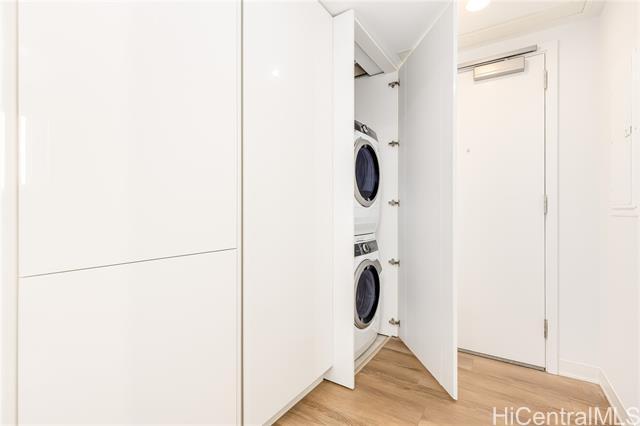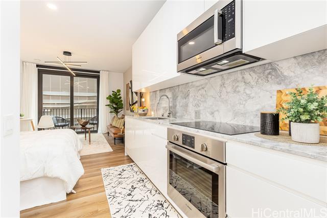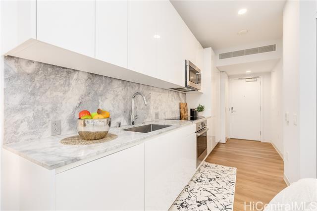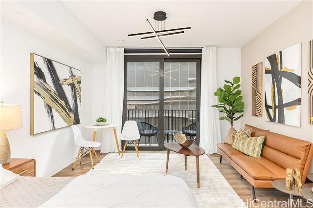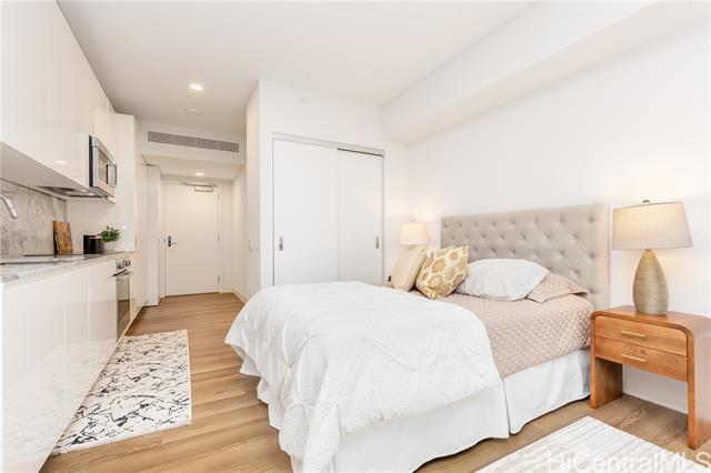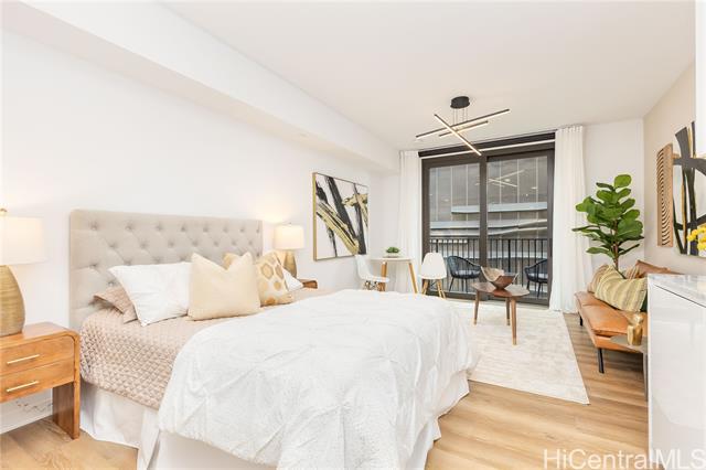 Be in the desirable and thriving Ward Village community with this well-priced, well-maintained studio in Aalii. The parking stall is on the same level as the unit, so no need to wait for an elevator. A 5th floor storage room is also included with the sale. Upgrades include new Washer/Dryer, USB outlets, and a home smart system. Digital blinds and fresh drapes for the lanai doors give multiple privacy options. This unit has high 9ft ceilings, which make the space feel more open. Aalii is known for its plethora of amenities and is next to Whole Foods in Kakaako. The WV community benefits from Assocation security patrol, and has wide sidewalks. Enjoy premium restaurant and retail offerings, all within a conveniently accessible area.