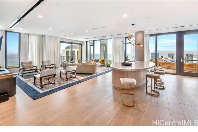 Excellent opportunity for homeowners and investors alike at A‘ali‘i in Ward Village. This well-maintained 2-bedroom, 2-bath residence on the 21st floor offers unobstructed views, abundant natural light, and a smart, efficient layout. Completed in 2019, features include Bosch appliances, a full-size in-unit washer and dryer, custom closet system in the primary bedroom, upgraded lighting, and double drapery with track and panels. Enjoy resort-style amenities and a highly walkable location near Whole Foods, Ala Moana, dining, and entertainment—an ideal blend of lifestyle and long-term value.
