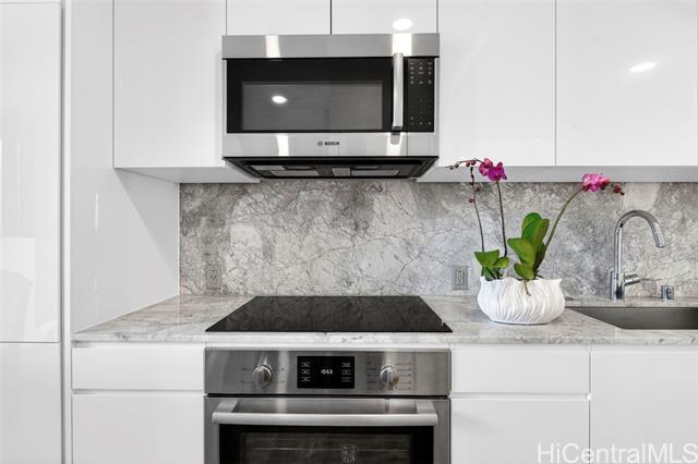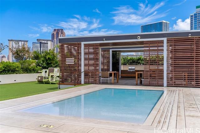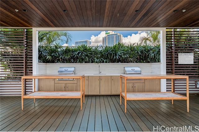 Experience modern island living in the heart of vibrant Kakaako/Ward Village, just moments from Waikiki. This studio at A'ali'i sits on the cool side of the building and offers beautiful mountain and city views. The thoughtfully designed interior features premium Bosch appliances, floor -to- ceiling cabinetry, natural stone countertops, and custom panel finishes on the refrigerator and dishwasher, along with the convenience of in-unit laundry. A'ali'i's resort style amenities elevate everyday living with a barbeque area, cabanas, pool, hot tub, dog park, outdoor fitness deck, rooftop fitness club, sunset sky lounge, and Oceanview gathering spaces. Enjoy unmatched walkability with Whole Foods Market, AMC Theater, South Shore Market, and Ala Moana Beach Park all just steps away. An extraordinary opportunity for turn-key urban living or investors to own in one of Honolulu's most dynamic neighborhoods.
