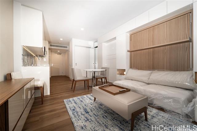 PRICE REDUCED FOR QUICK SALE. FABULOUS OCEAN VIEWS!!! Fully furnished studio with 1 parking stall in ‘A‘ali‘i, located in the highly desirable Ward Village in Kaka‘ako. Custom furniture selected by Solomon Cordwell Buenz architects in collaboration with Rottet Studio makes this residence a joy to come home to. This unit features creative, contemporary, and elegant finishes and is situated on the cooler, quieter side of the building. Enjoy penthouse-level amenities on Lanai 42 — a full-floor oasis designed for relaxing and socializing — offering breathtaking 360° views of the mountains, city, and ocean, along with a state-of-the-art fitness center. Located in the heart of Ward Village, this residence offers immediate access to a vibrant, master-planned walkable neighborhood with world-renowned restaurants, unique local retailers, a flagship market, and free community events. Property is sold AS IS and the sale includes furnishings.
