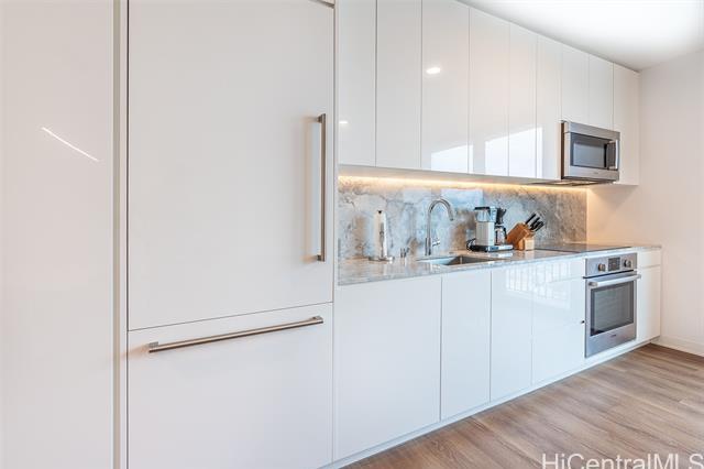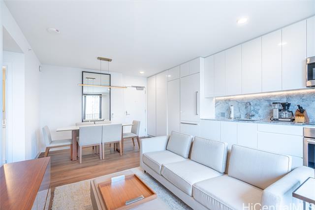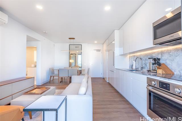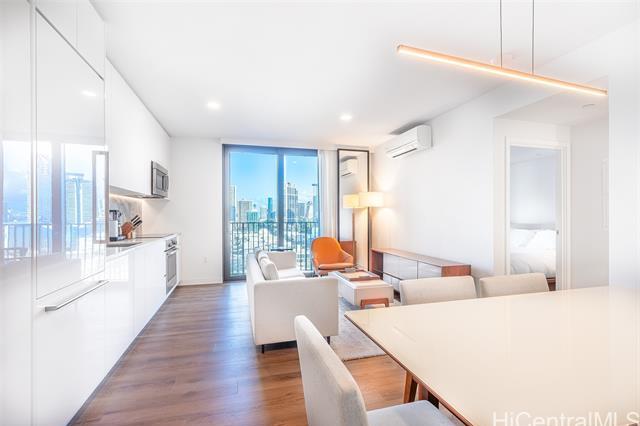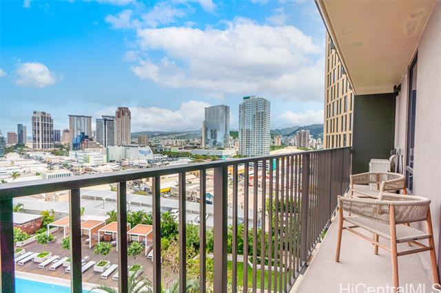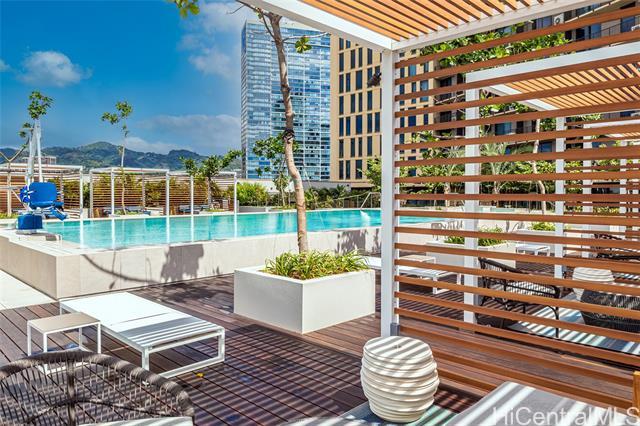 Priced to sell. Turn-key residence with a developer furniture package included, offering effortless living in the heart of the vibrant Ward Village community. This thoughtfully designed home features 473 sq. ft. of interior space and a 76 sq. ft. lanai, with a clean, efficient floor plan that maximizes comfort and functionality. Enjoy relaxing resort-style views overlooking the swimming pool, creating a peaceful backdrop in an urban setting. The unit includes one parking stall on the 3rd floor with a convenient storage locker. Ideally situated in ‘A‘ali‘i at Ward Village, Honolulu’s premier master-planned community, just moments from Ala Moana Beach, world-class dining, Whole Foods, and an exceptional collection of shops and amenities.