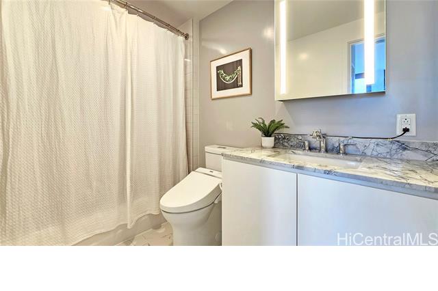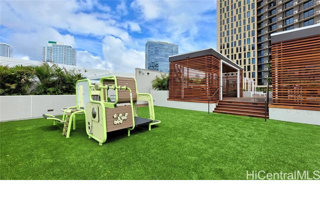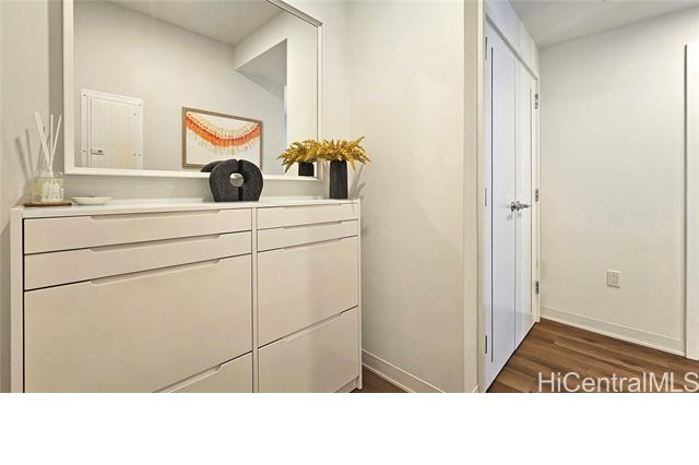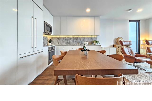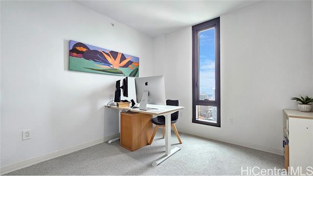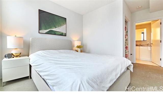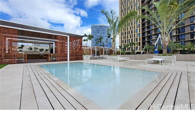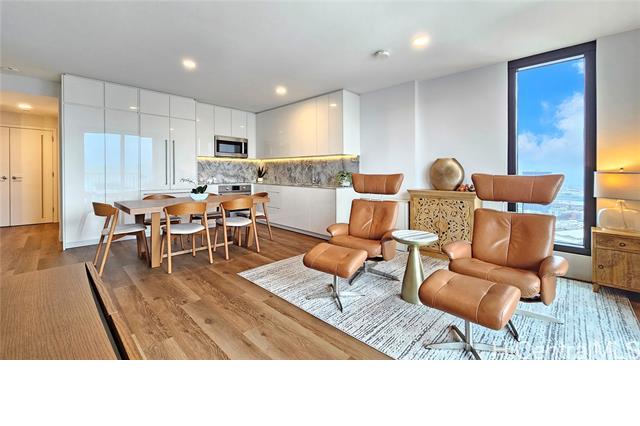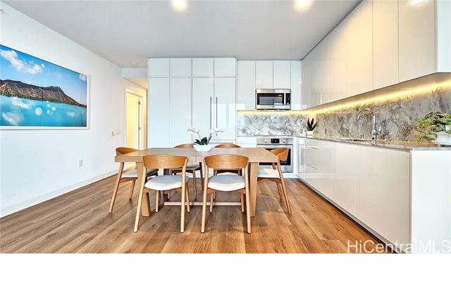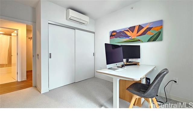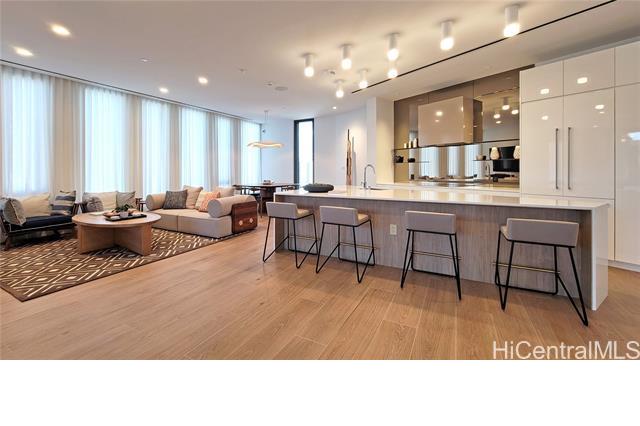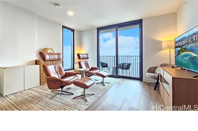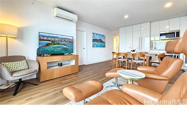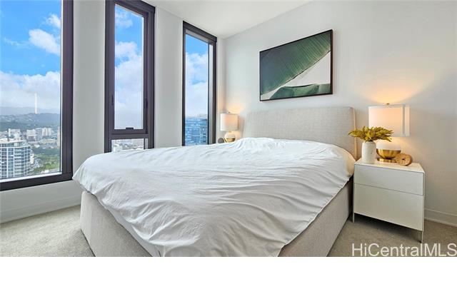 Rare opportunity for High-Floor living with exceptional storage and parking at A‘ali‘i at Ward Village. This 2-bed, 2-bath residence includes Two Low-Level Side-by-Side parking stalls with both overhead storage plus a private storage room. This partially furnished unit features Quartz counter tops, engineered wood flooring, & Bosch appliances. The lanai captures beautiful Mountainscape overlooking the Honolulu City Views, while cool trade winds provide refreshing breezes that help keep the home comfortable and energy efficient. Residents have access to a penthouse-level fitness center on the 42nd floor, a yoga studio, pool, hot tub, BBQ areas, event rooms, a gated dog run area along with a dog wash room, and Bike/Surfboard Storage. Conveniently located in the luxurious neighborhood of Ward Village and nearby Ala Moana Shopping Center, Ala Moana Beach Park, Whole Foods Market, restaurants and entertainment, and popular surf breaks. There is something for every lifestyle!