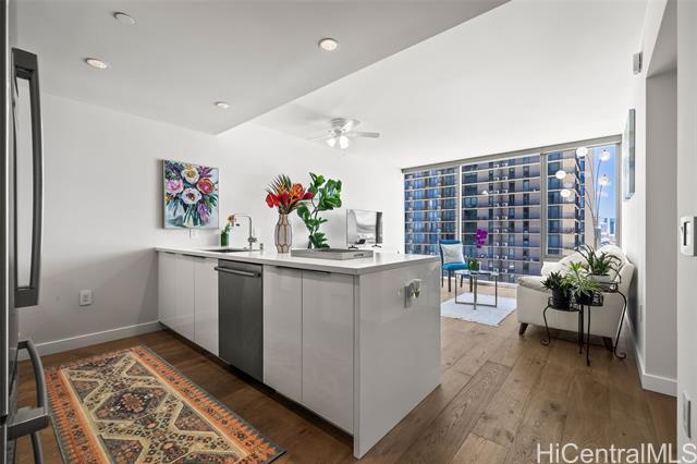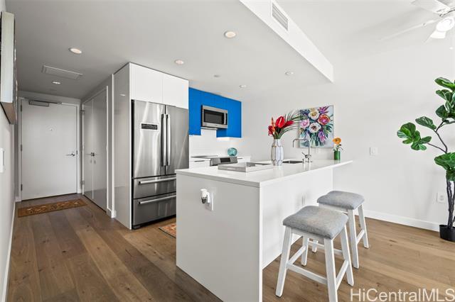 Welcome to modern island living at Ae‘o. This pristine one-bedroom, one-bath residence is located in the heart of Ward Village in Kaka‘ako. Impeccably maintained, the home is fully furnished and move-in ready, offering a seamless opportunity to enjoy one of Honolulu’s most desirable urban communities. The thoughtfully designed open floor plan features floor-to-ceiling windows, contemporary finishes, and a sleek, well-appointed kitchen. Additional highlights include central air conditioning, an in-unit washer and dryer, and a dedicated storage locker for everyday convenience. Ae‘o offers an exceptional collection of resort-style amenities, including two swimming pools, indoor and outdoor fitness centers, spa and sauna, movie theater, rooftop sky deck, dog park (2 pets up to 60 lbs), guest suites, playground, BBQ pavilions, and secured direct access to Whole Foods Market. Ideally located near Ala Moana Beach Park, Ala Moana Center, and a wide array of dining and entertainment options, this residence is ideal for both investors and owner-occupants seeking everything they need—all in one place.