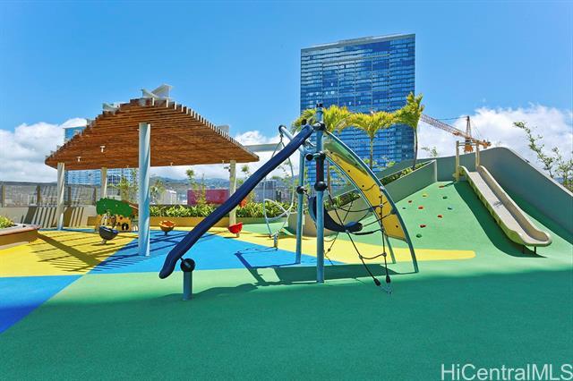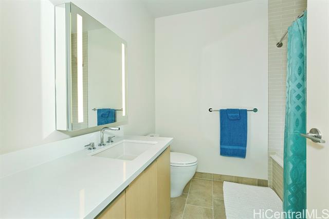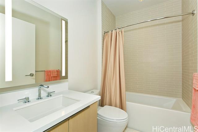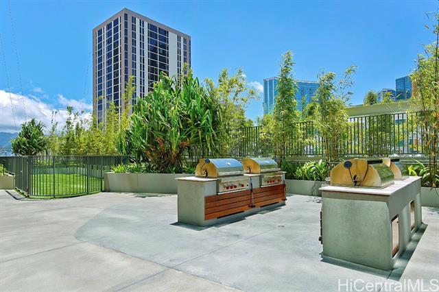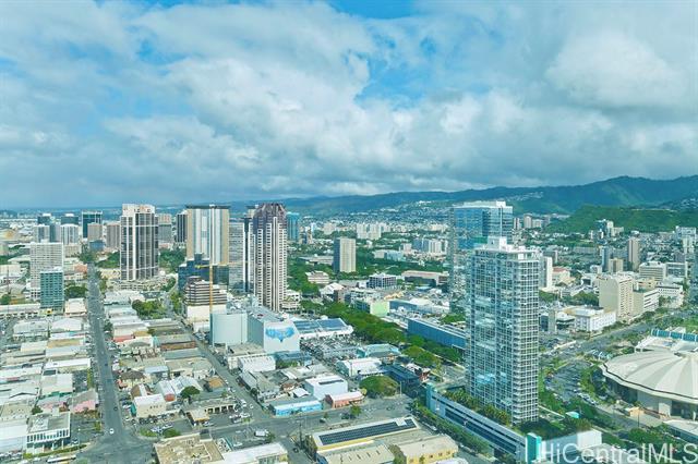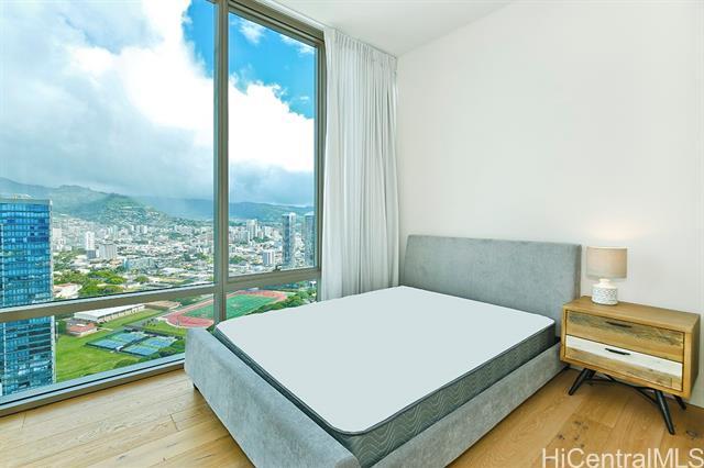 Experience 2-Bedroom Penthouse-Level Residence in Ae'o. The Corner-End PH unit has special 10 foot ceiling and floor to ceiling window with design to maximize the panoramic views. Luxurious upgrades include motorized shades. Direct private access to Whole Foods, all in the heart of Ward Village near Ala Moana Beach Park, shopping, dining, and entertainment. This building offers resort - style amenities that include: Sky Terrace, two pools, sauna, steam room, private screen theater, fitness center, dog park, BBQ cabana, playground, and guest suites. The well-designed layout features a contemporary kitchen, Quartz countertops, and Bosch appliances, along with quality wood flooring throughout living areas and bedrooms.