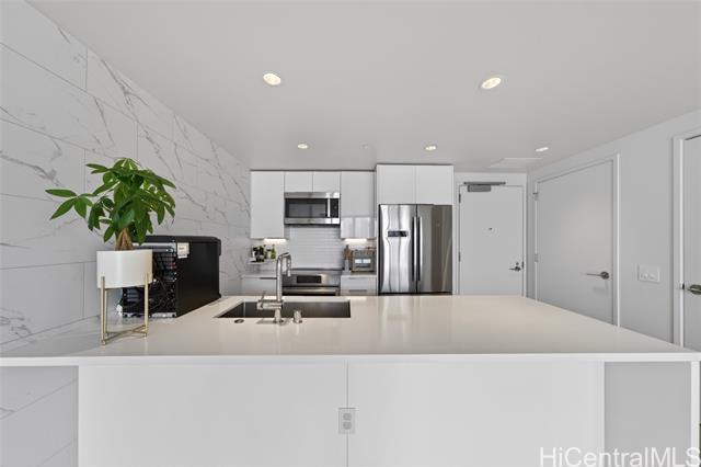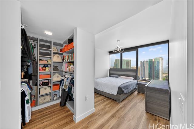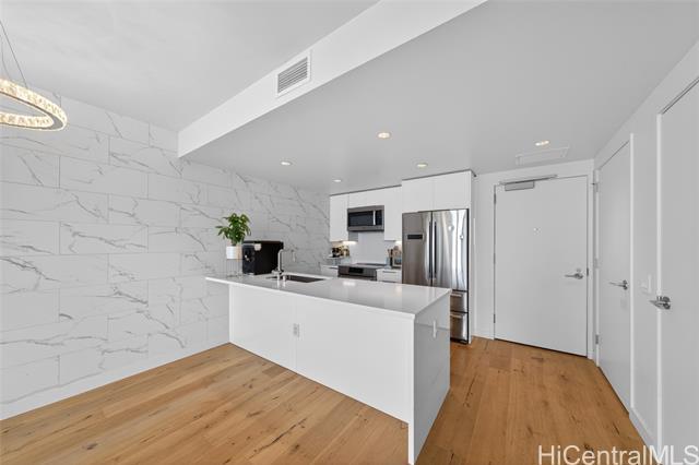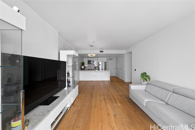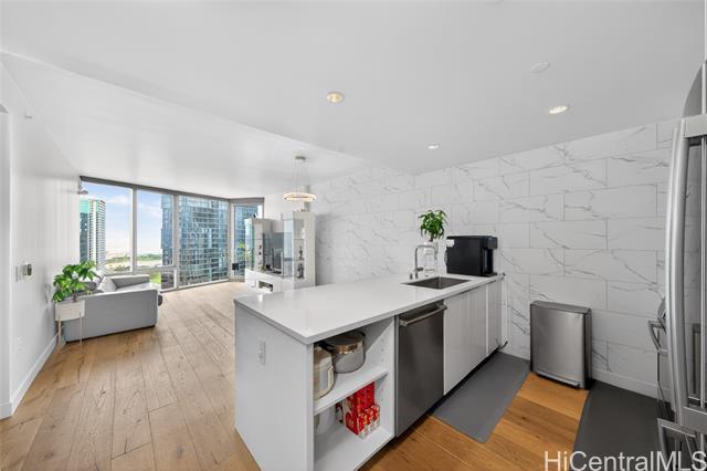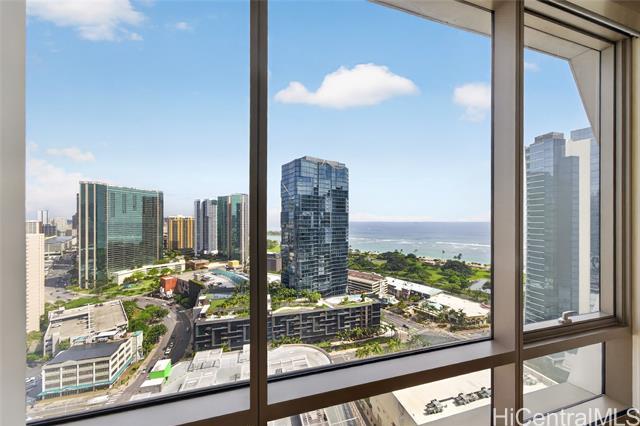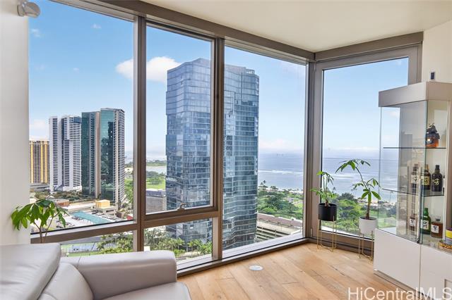 Experience elevated island living in this stunning luxury residence at Ae?o. This beautifully appointed 2-bedroom, 2-bathroom condo offers modern elegance paired with exceptional convenience, featuring two coveted parking stalls. Floor-to-ceiling windows fill the space with natural light, while refined finishes and an open-concept layout create a seamless flow between living, dining, and kitchen areas—perfect for both relaxing and entertaining. The gourmet kitchen is outfitted with high-end appliances, sleek cabinetry, and premium countertops, ideal for the discerning home chef.The spacious primary suite provides a private retreat with a spa-inspired bathroom and ample closet space, while the second bedroom offers flexibility for guests, a home office, or additional living needs. Enjoy resort-style amenities including a pool, fitness center, rooftop terrace, and more—all within a vibrant, walkable community offering world-class shopping, dining, and entertainment just steps away. This is luxury urban living at its finest in the heart of Honolulu.