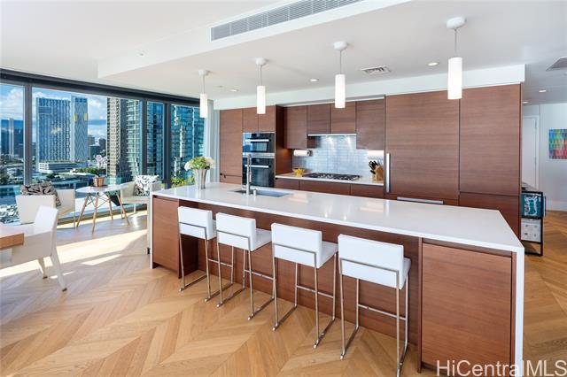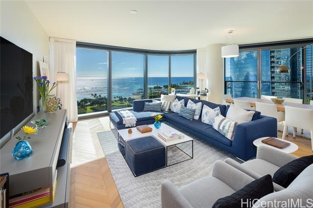Oceanside corner 3-bed, 3-bath residence at Anaha, one of Howard Hughes’ premier full-service concierge buildings. Enjoy exceptional ocean and sunset views from nearly every room. Features include nearly every upgrade possible, en-suite baths, furnishings and fixtures by B&B Italia and Cassina, Neorest Toto toilets, designer lighting, dual-layer automatic drapery, kitchen pull-out shelving, a primary suite with built-in soaking tub, and a gourmet gas kitchen with Miele appliances. Anaha offers top-tier amenities: guest suites, glass-bottom pool, spa, putting greens, golf simulator, social and private dining rooms, theatre, lounges, chef and catering kitchens, library, state-of-the-art gym, sauna/steam, locker rooms, tennis, pickleball, volleyball, BBQ pavilions, and a pet-relief area. Located in the heart of Honolulu across from Whole Foods, steps from Ward Village dining, activities, and Ala Moana Beach Park, and minutes to Waikiki, Diamond Head, Kahala, and Downtown. Priced for immediate AS-IS sale.