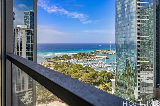 Life at the Anaha, the Hawaii lifestyle you are looking for whether it be full time or just a few months of the year. First off, Life at the Anaha is sophisticated luxury living! From the truly resort-like amenities to front desk Concierge, to be situated right in front of Honolulu's best and largest beach park with friendly ocean waters and land activities too. Plenty of shade, grassy areas and exercise paths. Close by, World class dining AND Ala Moana Shopping Center, the country's largest, open-air mall with world class shopping and a international food court that has a dish for everyone! Step Inside to this home to 9' high ceilings, ocean views from both living room and bedroom, hardwood floors, Miele appliances, gas cooking, Quartz countertops, wine cellar and close to 800 square feet of fine living area. Bring your pets too, they are welcome here. Did I mention the guest suites? Whole Foods is conveniently located across the street. Come see today!