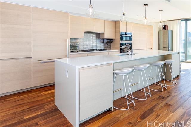 Anaha ~ “Reflections of Light” offers sophisticated luxury living in Honolulu’s distinguished Ward Village, featuring a corner residence towards Diamond Head with 3 bedrooms and 3.5 baths, including a primary suite with ocean views. Designed with elegance and functionality, the home showcases 9-foot ceilings, Miele appliances, Dornbracht fixtures, European cabinetry, hardwood flooring in the main living areas, and carpeting in the bedrooms, along with a separate laundry room, wine storage unit, and a 66 sq. ft. storage unit conveniently located on the same level as two side-by-side parking stalls. Residents enjoy world-class amenities such as concierge service, an ocean-view pool, tennis and volleyball courts, guest suites, a chef’s kitchen, dog park, golf simulator, and putting green, while central AC, gas cooking, pet-friendly policies, and comprehensive maintenance coverage—including cable TV, gas, hot water, internet, water, and sewer—ensure comfort and peace of mind with no special assessments and 100% insured.