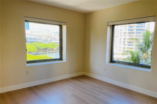 Watermark is one of the premiere condominium buildings in Waikiki! Preferred rarely available "01" corner unit on the lower floor with eye-level view of the boat harbor, ocean and common area of landscaped tropical garden. Additional windows in the kitchen, dining area and main bedroom for extra comfort. Conveniently located to many of the shopping and eating establishments in Waikiki, as well as Ala Moana Shopping Center and Ala Moana Beach Park. Gourmet kitchen is equipped with top of the line appliances, cabinets and granite counter tops. Well planned layout provides both convenience and privacy. This unit offers newly installed flooring. Building amenities include heated swimming pool & spa, gym, meeting room, sauna, BBQ area, beautiful garden area with walking path. Two reserved covered parking stalls & storage locker. Concierge desk and 24 hour security.