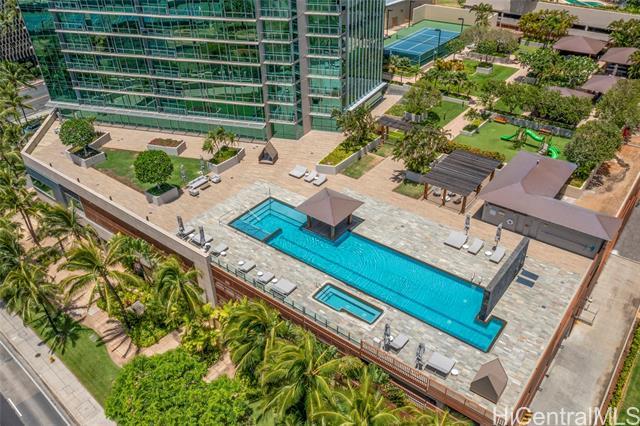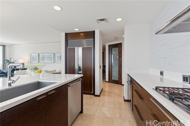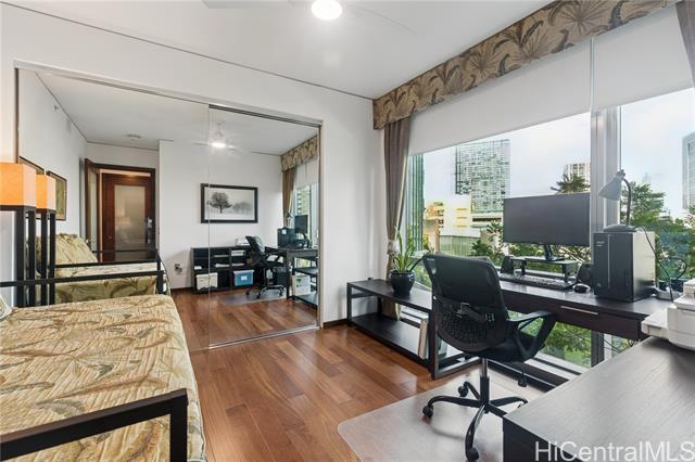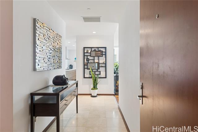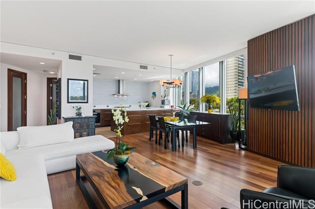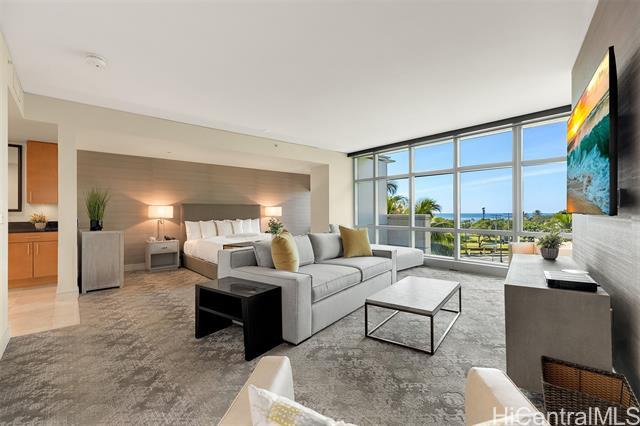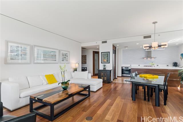 Welcome to Hokua , Honolulu’s crown jewel of luxury condominium living. Since its debut in 2006, Hokua has stood as a beacon of elegance, sophistication, and modern comfort in the heart of Kaka‘ako. It offers the best of both worlds—resort-style amenities and the privacy of a single-family home—all within one of the most coveted addresses on the island. Apt. 5G is a rare gem, having the interior totally gutted and upgraded, every detail has been meticulously curated to enhance comfort, functionality, and aesthetic appeal: hardwood floors and new custom doors throughout, modern kitchen, custom cabinetries and even a new central A/C system, offering 1,620 square feet of gracious living. From the moment you step into the entry foyer, you’ll feel the ambiance of a private home. The layout is ideal for those seeking both openness and privacy: the two bedrooms are separated by a long hallway, ensuring quiet retreats for each occupant. The views from your living room are nothing short of breathtaking with the lush greenery of Ala Moana Beach Park and the ocean beyond. One of the unit's parking stalls has a dedicated EV charging station It will awe the most discerning buyers.