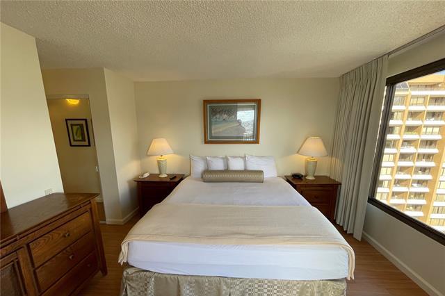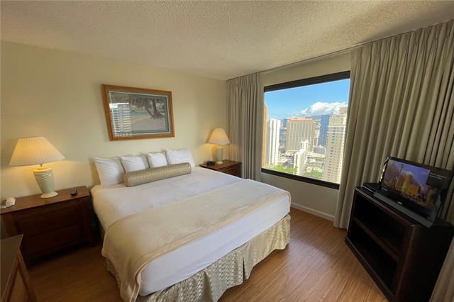 LEGAL 30-DAY MINIMUM RENTAL/ HIGH FLOOR UNIT/ OPEN LANAI; Spacious & Clean. Remodeled (2011) great corner unit, mountain & canal view. Vinyl flooring, kitchen, & bath cabinets. Great location for easy access to restaurants, convenience stores, Ala Moana shops, beaches, surf breaks, and on the Bus and trolley line. Seasoned building managed and Board of Directors, 24-hour security, and all the amenities you need! Unit is fully furnished and ready to occupy or lease. The Seller has purchased 96.893% of the Leased Fee interest. The AOAO has the right & obligation to purchase the remaining 3.01% leased fee interest no later than the end of the lease expiration of 12/31/2039. Quarterly lease rent @ $41.90 paid with Maintenance fee. Discovery Bay is a wonderful choice if you are looking for a great location close to the Beach, Ala Moana Beach Park, and Ala Moana Shopping Center. Amenities include Heated swimming pool, BBQ area, (2) exercise rooms, sauna, recreation/sunning area & whirlpool. Building has security guard, secured lobby & video. Commercial units on two bottom floors along Ala moana.