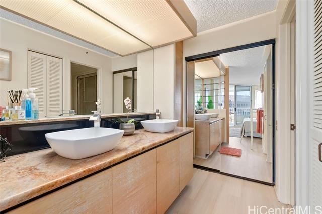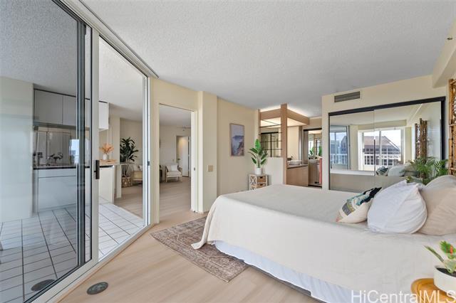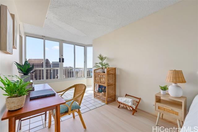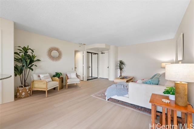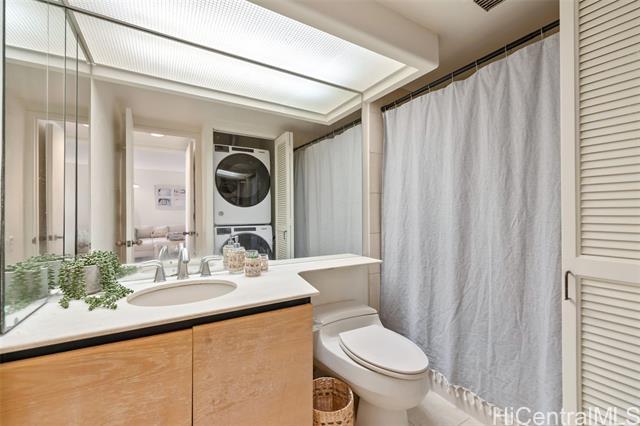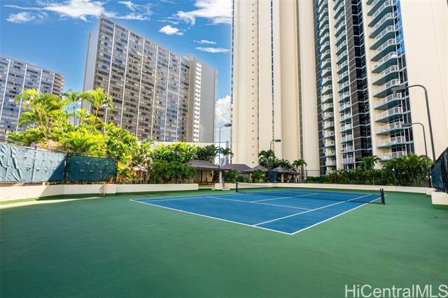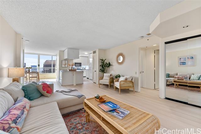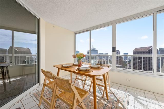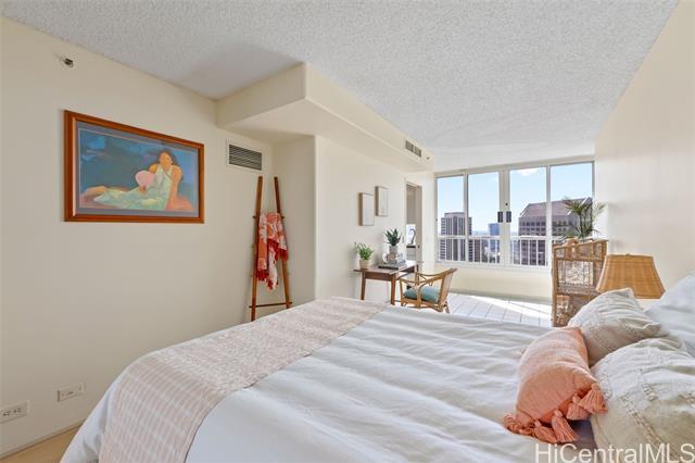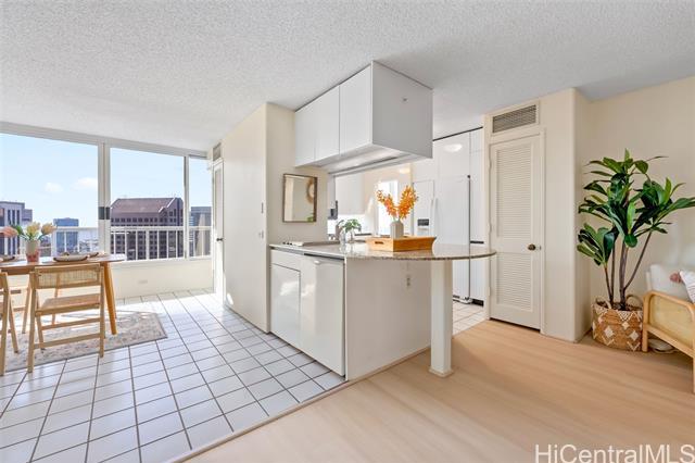 This rarely available penthouse offers 1,200 sq ft of beautifully updated living space, featuring fresh paint, new luxury vinyl plank flooring, and a modern full-size stacked washer/dryer. Enjoy breathtaking ocean, harbor, and city views from high above it all. Honolulu Park Place is a meticulously maintained, pet-friendly building with a wealth of resort-style amenities, including a swimming pool, hot tub, two-story fitness center, tennis, racquetball, and pickleball courts, BBQ cabanas, koi ponds, a bowling alley, café, party room, and plenty of guest parking. With 24-hour security and gated garage parking, you'll feel safe and secure. This unit also includes two parking stalls with storage units. Ideally located near downtown Honolulu, with easy access to trendy bars, cafes, and restaurants. Plus, it’s VA-approved! Come see why this is the perfect place to call home.