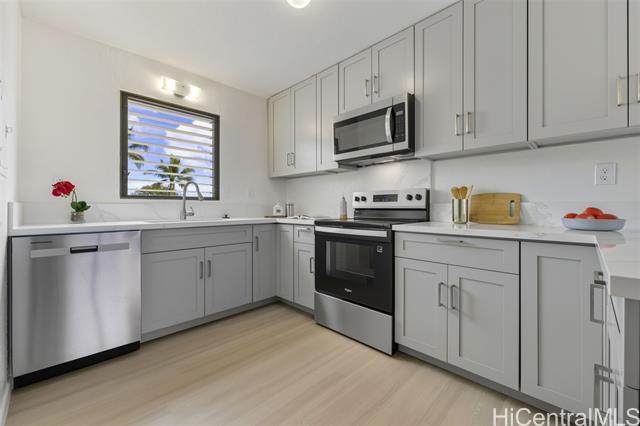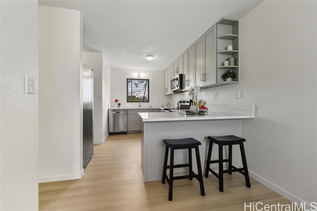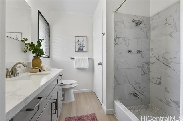 Newly renovated with quartz countertops, solid wood cabinets, shower, toilets, sinks, vinyl flooring, fresh paint, all new light fixtures, and brand new appliances. Located in desirable Tropicana Village in Aiea across from Pearl Country Club and minutes from Pearlridge Mall. Perfect blend of comfort, style, and convenience in this 3-bedroom, 2.5-baths townhome that offers separate living rooms and dining rooms, 2 storages, oversized 2-car garage and additional 2-car driveway parking. Spacious lanai perfect for enjoying a morning coffee or evening relaxation. Prime location and offers easy access to mall, dining, parks, and schools. Commuters will appreciate the proximity to major highways, making travel to Honolulu or west side a breeze. All comments, data is provided by seller or seller's representatives. Buyer to confirm all & hold all parties harmless from any discrepancy data in the mls and advertising. Limited Service–Data Entry Addendum signed by seller/s must be signed by buyer/s with Purchase Contract.