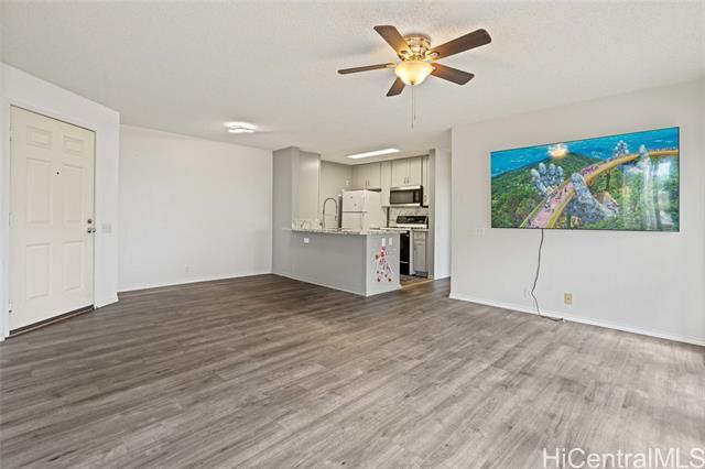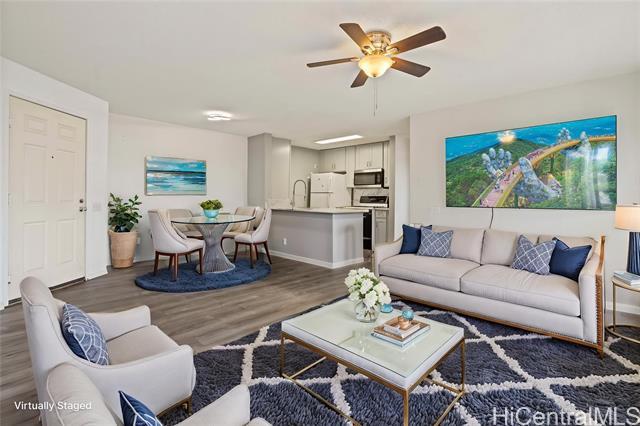 Welcome to Ewa Gentry Sunrise! This well-maintained 2-bedroom, 2-bath condo with two covered parking stalls offers a comfortable and convenient lifestyle in one of Ewa’s desirable communities. The home features vinyl flooring throughout the living room, kitchen, and primary bedroom, ceramic tile in both bathrooms, and cozy carpet in the second bedroom, offering a perfect blend of style and comfort Enjoy an open-concept layout, a functional kitchen, and a private lanai ideal for relaxing or entertaining. Plenty of guest parkings right in front of the unit. Conveniently located near parks, schools, shopping, and just a short drive to the beach.