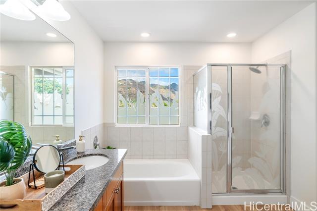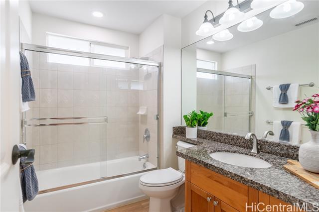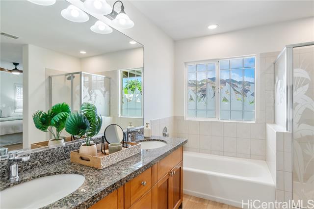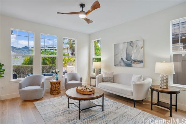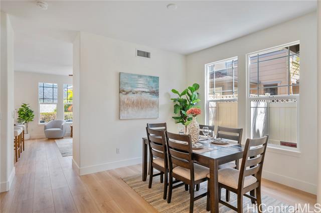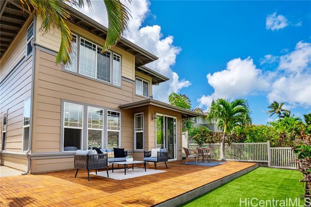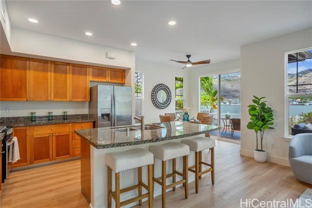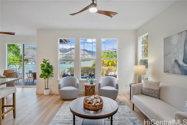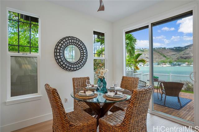 Rare Opportunity in The Cottages! Experience refined island living in the prestigious Hawaii Kai Peninsula community. This waterfront residence—attached only at the 2-car garage—features an expansive wraparound yard with serene marina views. This home features a two zone, central A/C system allowing you to cool upstairs or downstairs individually. 2025 renovations include new luxury vinyl plank flooring, fresh interior paint, modern recessed lighting, new toilets and faucets, stylish ceiling fans, and a beautiful Acacia wood deck tile system that transforms the backyard into a stunning outdoor retreat. The versatile layout offers 3 bedrooms and 2 baths upstairs, plus a downstairs flex room and a full bath—perfect for a 4th bedroom or office. The light-filled living and dining areas open seamlessly to the private yard, ideal for entertaining or relaxing. Enjoy resort-style amenities: pools, spa, fitness center, BBQ areas, walking paths, marina promenade, playgrounds, and 24-hour security. A true blend of comfort, style, and island luxury!
