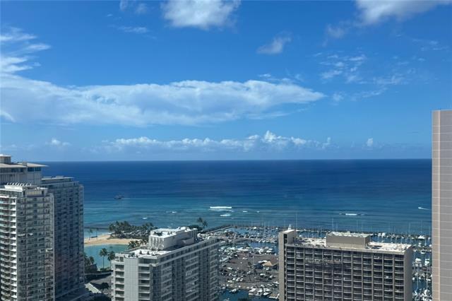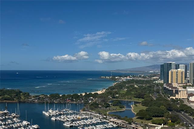High-floor corner unit featuring panoramic gorgeous views of Diamond Head, the Pacific Ocean, Yacht haror, Ala Moana beach, and Ala Wai Canal. Resort-style living with beutifully landscaped grounds, concierge service, heated saltwater lagoon-style pool, whirlpool spa, fitness center, meeting room, outdoor BBQ pavilions, plus two covered parking stalls and storage. Parkings are side-by-side with extra storage cabinet over the parking stalls.