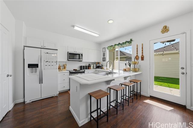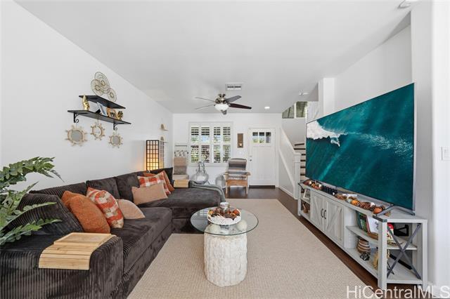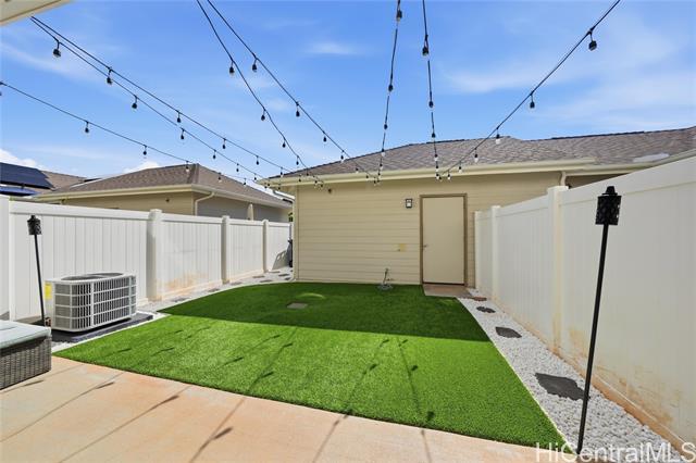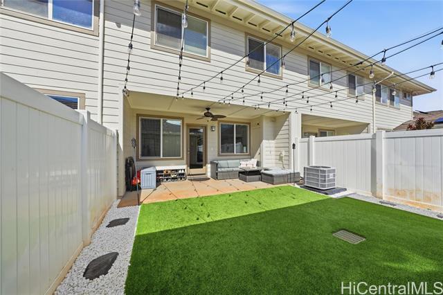 Welcome to your very own island getaway home at Ka Makana at Hoakalei! This stunning 3 bedroom 2 ½ bathroom freshly painted townhome features two stories of pure comfort. Natural light pours into this home to highlight the large kitchen with new appliances, perfect for hosting gatherings of any kind. You'll be kept nice and cool while you relax with the brand new AC system. Head upstairs to find bonus storage, as well as a brand new washer/dryer combo just outside your bedrooms for maximum convenience. The primary bedroom boasts a double vanity bedroom, a walk-in closet, and a sliding glass door to bring you right onto your upper patio. Step outside your back door to find a patio and a lush, fenced-in yard outfitted with new low-maintenance turf. This home also features a garage just past the backyard. This home is in a PRIME location, being just across the street from the Ka Makana Swim Club, tennis/pickleball courts, gym, and more. You are also a quick drive to Wai Kai, beaches, shopping, golf courses, and so many other necessities. This home has everything and more.
