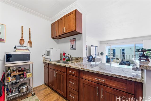 Seller has paid off the upcoming ~$30,000 window project! Rarely Available & Beautifully Updated Residence at 1001 Wilder! Welcome to this spacious and well-maintained 1-bedroom, 1-bath home featuring high ceiling, an open floor plan, and over 700 sq. ft. of comfortable living space. Enjoy beautiful mountain and city skyline views from your private lanai. The unit includes a modernized kitchen, Toto Bidet Toilet, covered parking, and a large storage locker conveniently located on the same floor as the laundry room. Perched at the top of Wilder Avenue in Makiki, 1001 Wilder is a quiet, charming, and well-managed building known for its high owner occupancy and 24-hour security. Amenities include a heated pool, recreation deck, exercise room, a workshop, and ample guest parking—perfect for entertaining!