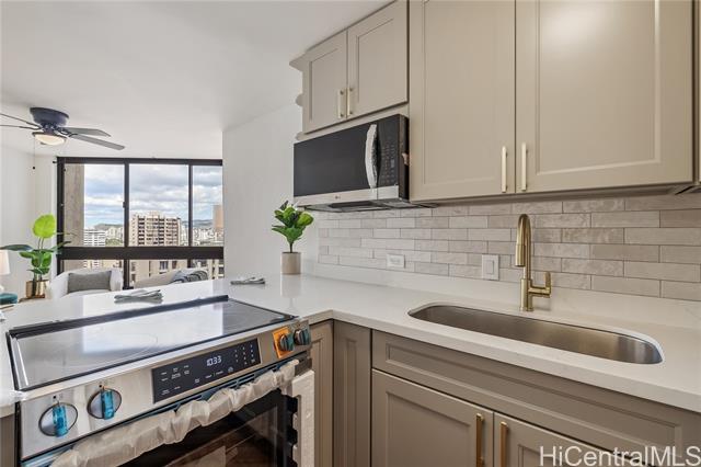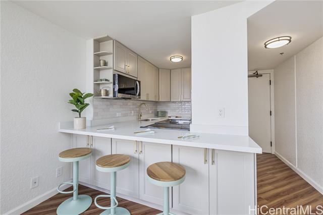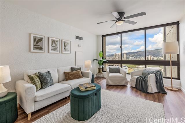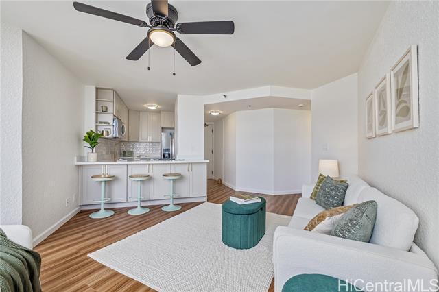 Welcome to you freshly renovated sanctuary at Liliuokalani Gardens, 2104 (Queen Tower)! 100% Hurricane coverage in place with no special assessment! Experience tranquil island living in this tastefully reimagines, never-lived-in oasis. Thoughtfully completed in October 2025, #2104 blends modern comfort with timeless serenity finished with all new appliances. This home welcomes the sunsets in soft pastels, majestic mountain views, & sparkling cit lights. This lush oasis once belonged to Queen Liliuokalani herself. Designed with privacy and safety in mind, this rare unit includes an in-home fire sprinkler system. Located just blocks from Waikiki Beach, The Zoo, Ala Wai Golf Course, Jefferson Elementary, Kapiolani Park, Kaimana Beach, and premier dining, this home is your serene retreat in a vibrant city setting. Resort style amenities include a koi pond, the largest residential pool in Waikiki, spa, BBQ pavilions, pickleball/tennis courts, EV charging stations, & 24/7 security-all surround by lush tropical gardens. HOA fee includes internet, cable, hot water, water and sewer. Assigned parking $300/year. 90-day minimum rental.