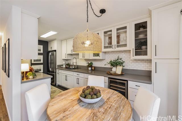 Say aloha to Haiku Point 2, where island comfort meets modern living with a breezy vibe. This beautifully updated TURN-KEY condo invites you in with warm wood tones, fresh white interiors, and thoughtfully designed spaces that capture the essence of relaxed Hawai‘i living. The kitchen shines with shaker-style cabinets, quartz countertops, and stainless steel appliances, while the living area feels light and inviting with natural textures and greenery throughout. The bathroom’s soft palette and modern fixtures create a soothing retreat after a long day. Surrounded by views of the Ko'olau's, lush greenery and gentle trade winds, this home offers the perfect balance of serenity and convenience. Located just minutes from Windward Mall, beaches, and the heart of Kane‘ohe.