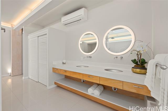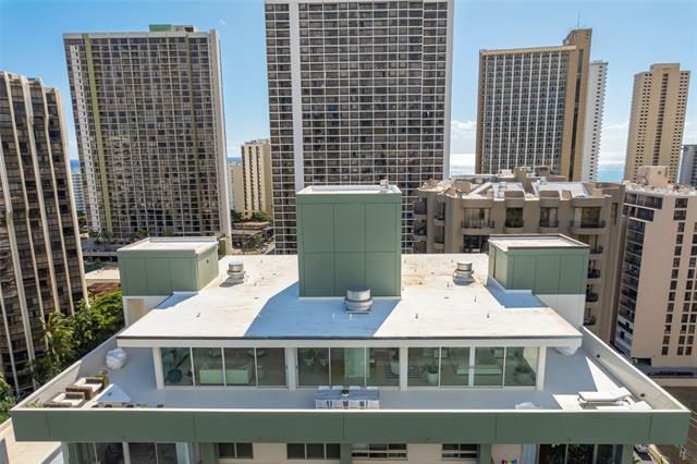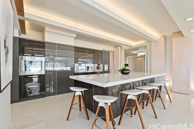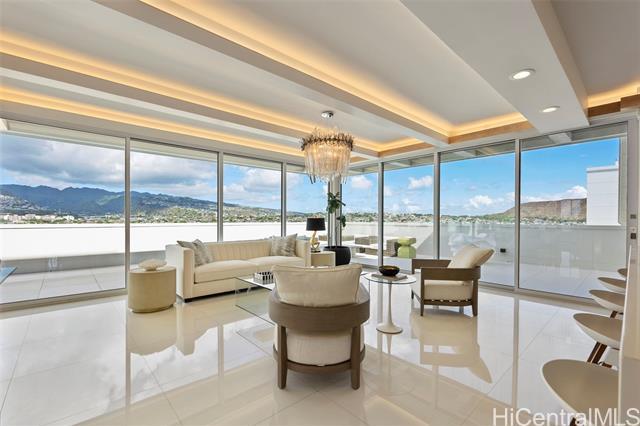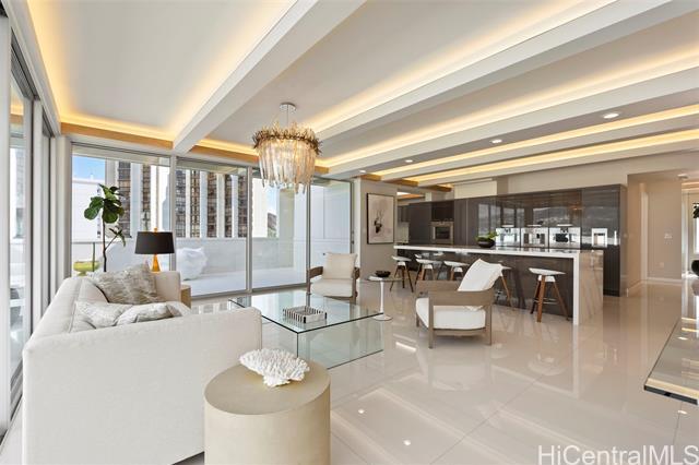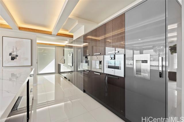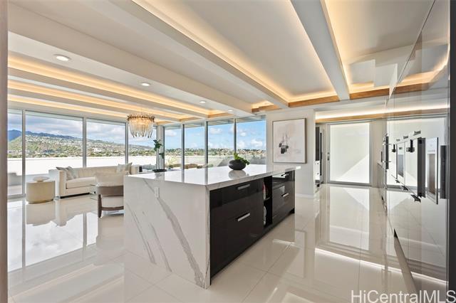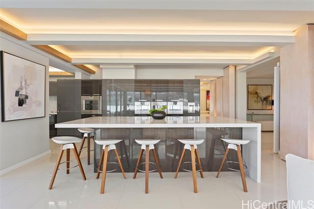 Discover this exceptional single level Waikiki penthouse retreat where luxury, elegance, and Hawaiian beauty seamlessly meet. Encompassing approx. 7,500 sq. ft. took over 2 years to complete presenting unmatched comfort, design and functionality handcrafted Alf Monticarlo kitchen features an expansive 11.5 x 5.5 ft. Cambria island and Gaggenau appliances, induction cooktop with discreet 650 CFM vents, speed, steam, and rotisserie ovens, a coffee maker, freezer, dual-temperature wine cellar. Floor-to-ceiling Fleetwood windows, defogger mirrors, porcelain facets, maple columns -underwent extensive plumbing retrofit, new roof, electrical and plumbing layouts, rescheduled windows, major structural enhancements, all overseen by 5 engineers with detailed plans and permits. A cantilevered balcony not only offers 360-degree views but also contributes to noise isolation, enhancing the serene atmosphere. Recent upgrades include $240,000 in concrete work on the lanai, concrete interior with polished porcelain tiles for added durability and beauty. Additional building improvements feature complete spalding, paint, new roof with 360-degree copper flashing, ensuring lasting quality and beauty.