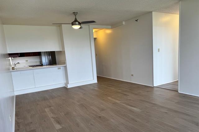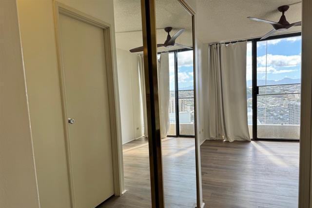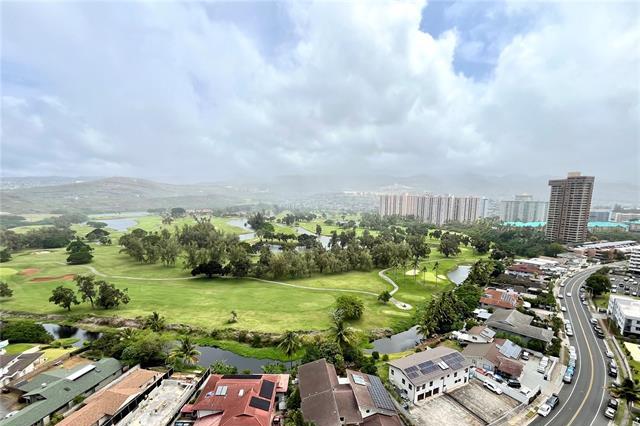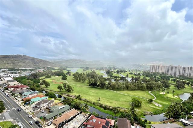 Rarely available 3 bedroom, 2 bath, 2 parking unit at Horizon View Tower! High floor unit with breathtaking views of Honolulu Country Club's beautiful golf course. With only four units per floor, this unit boasts 1,060 sq. ft. of interior living space and the relaxation and privacy that comes with a covered lanai. With floor to ceiling windows and sliding doors in each room, there is plenty of natural light to enjoy in every room. Enjoy peace of mind that comes with a secure gated parking lot and secure building access. Amenities include a pool with BBQ and recreation area and sauna. Horizon View Tower is also equipped with a sprinkler system and the convenience of a resident manager. Conveniently located near the airport, shopping plazas, eateries and various retailers. VA assumable at 2.25% Sold As-Is.