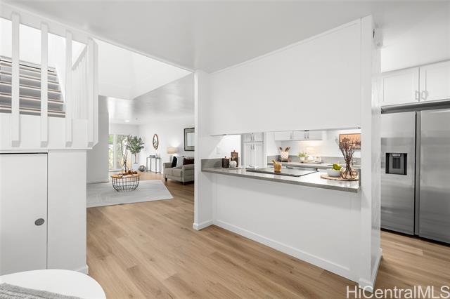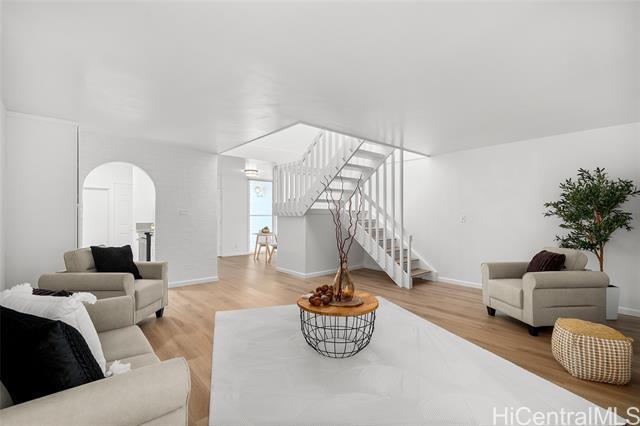Rarely available 4-bedroom, 3-bath townhome in the sought-after Laulea Town Houses community. Extensively renovated in 2024 with new flooring throughout and a fully updated kitchen featuring brand-new appliances. The versatile layout includes a first-floor bedroom and full bath - ideal for guests or multigenerational living. Enjoy a spacious backyard and the convenience of parking near your front door. Ideally located just minutes from top-rated Mililani schools, community pools, recreation centers, and shopping. Quick access to Kamehameha Highway makes commuting to town, military bases, or the North Shore easy and convenient. This is a wonderful opportunity to own a move-in-ready home in one of Central Oahu's most established and welcoming neighborhoods. The special assessment has been paid; monthly maintenance fees will drop to $650/month, beginning on 1/1/2026.
