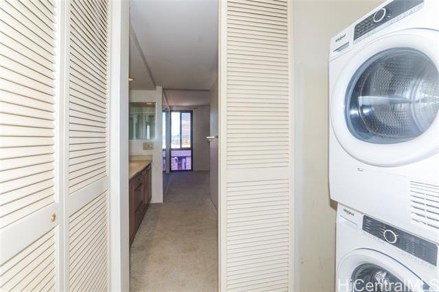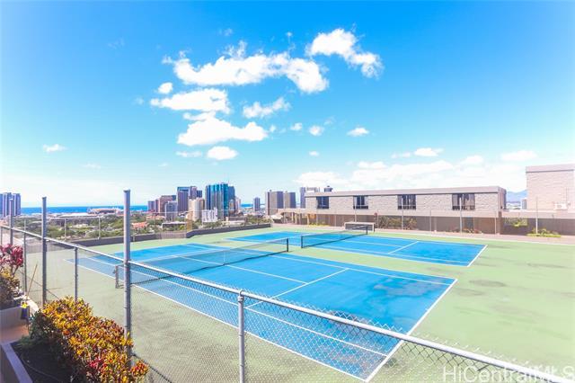 Spacious three-bedroom, three-bath unit at Dowsett Point, offering over 1,400 square feet of living space with city and mountain views. The unit features split air-conditioning units in the living room and each bedroom for personalized comfort. The kitchen offers the conveniences of granite countertops, a stainless steel refrigerator, glass-top stove, and dual ovens. A front-loading stack washer and dryer is an added benefit. Two covered parking spaces are located close to each other near the garage entry for easy access. Relax on the covered lanai with tile flooring while taking in the beautiful views. Dowsett Point offers excellent amenities including a swimming pool, hot tub, two tennis courts, and a spacious recreation deck ideal for relaxation and entertaining. Its central location provides easy access to nearby parks, shopping centers, and schools such as Royal Elementary and Roosevelt High. The building also features an on-site resident manager for added convenience. This unique building, built in 1980 on the scenic slopes of Punchbowl Crater, contains over 100 units w/a variety of one, two, & three bedroom floor plans. Sold in "AS IS" condition. Closing to occur in 2026.