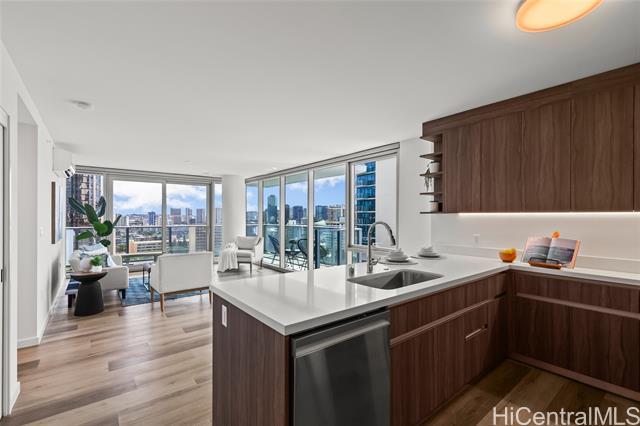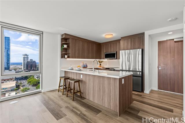 Welcome to The Park on Keeaumoku – Honolulu’s newest condominium! This brand-new 2-bedroom, 2-bathroom premium corner residence features modern finishes, an open floor plan, and a desirable layout with bedrooms separated from the living room for added privacy. Enjoy a private wrap around lanai of 172 sq. ft. with views from the mountains to coast line! Enjoy 2 parking stalls, along with resort-style amenities including a whirlpool, fitness center, yoga studio, movie theater, beautifully landscaped grounds, and arguably the largest residential pool in Honolulu! With shops, businesses, and restaurants right downstairs, everyday life is effortless and vibrant. Conveniently located near Ala Moana Center, Waikiki, schools, and hospitals, this community offers the perfect balance of urban convenience and island lifestyle. Whether you’re seeking a stylish new home or a smart investment, The Park on Keeaumoku allows rentals with a minimum 90-day lease, making it an excellent choice for both owner-occupants and investors.
