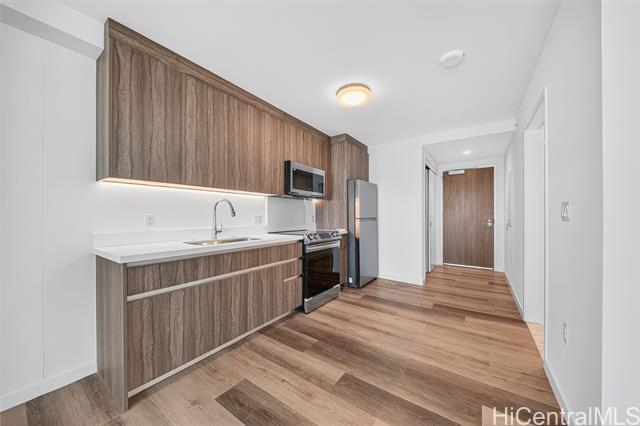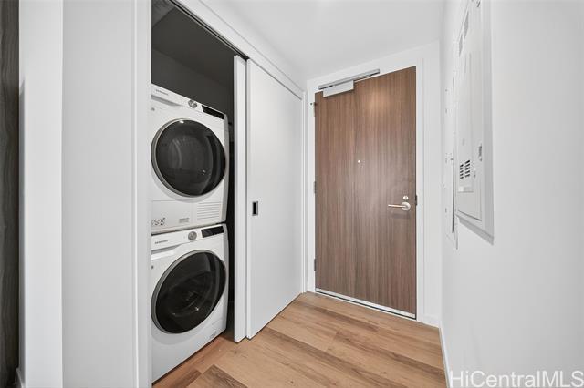 Experience modern island living at The Park on Ke‘eaumoku, Honolulu’s latest luxury condominium community. This spacious studio combines modern design with easy, low-maintenance living—featuring floor-to-ceiling windows, split A/C, a generous lanai, luxury vinyl flooring, quartz counters, stainless steel appliances, and in-unit laundry with assigned parking. Enjoy resort-style amenities including an infinity pool and spa with city and ocean views, BBQ pavilions, fitness and yoga studios, theater room, club lounges, sauna, and guest parking. Enjoy the best of urban living in this new home, conveniently located near Ala Moana Center, Walmart, Sam’s Club, and Target, with easy access to dining, shopping, and major freeways.