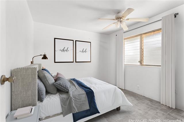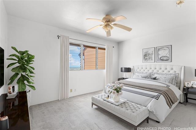 Looking for a place you can call your own? Spacious floor plan offers 1404 sq ft of living area with a full bedroom and bath on the ground floor. This 4-bedroom, 2-bath townhome could use some updating but is move-in ready and has tons of potential! The kitchen, living, dining, primary bedroom and outside balcony offers amazing and unobstructive views of the ocean and Diamond Head. Whether you're a first time homebuyer, investor or someone with a vision, this layout provides a unique opportunity to create your dream space! Located close to the bus line, freeway, schools, parks, businesses, restaurants, shopping mall and numerous sandy beaches.