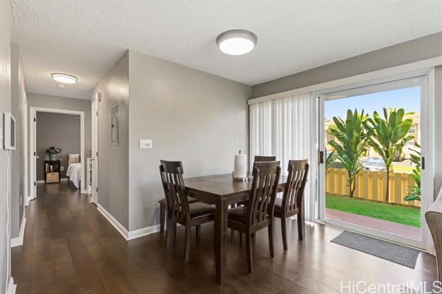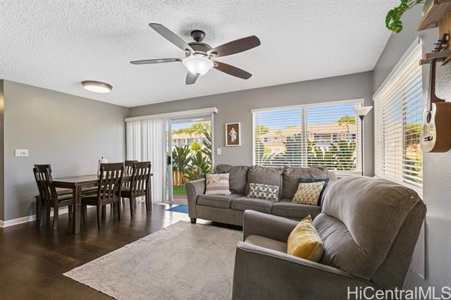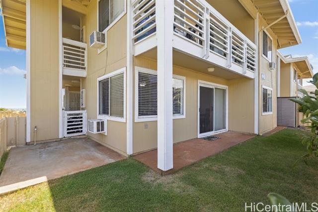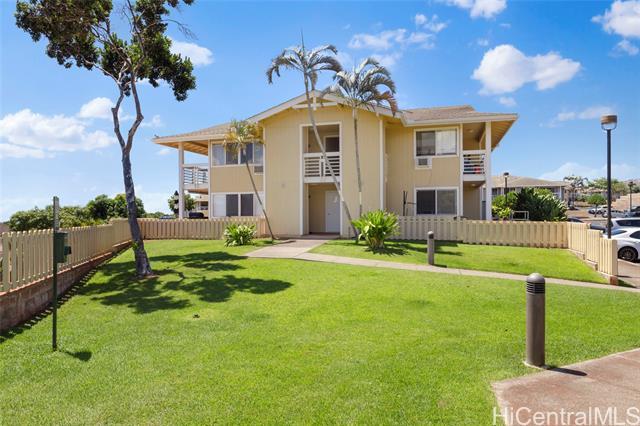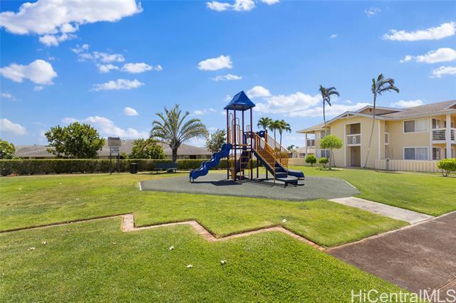 Ground-Floor Royal Kunia Unit with Largest Available Yard! Welcome home to one of the most sought-after units in this gated Royal Kunia community. This stylishly updated ground-floor unit boasts the largest yard size available, providing an exceptional outdoor space perfect for grilling, entertaining, and play. Inside, you'll find a turnkey home with a recently upgraded kitchen, featuring modern cabinets and sleek countertops. The layout includes two bedrooms and two full bathrooms. The primary suite offers convenience with two closets. Enjoy beautiful, quality flooring throughout and no stairs to navigate. The gated community is pet-friendly and offers fantastic amenities, including a playground and easy access to the nearby community park with a recreation center, basketball, and tennis courts. With two close-by parking spaces, a prime location just minutes from the freeway, shopping (Walmart, Times), and dining, this home truly meets every need.