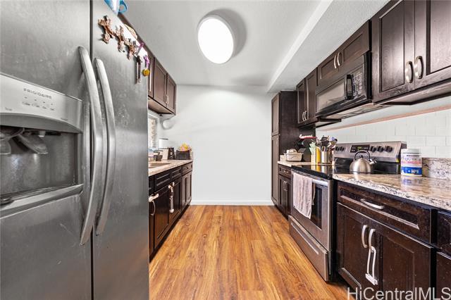 Welcome home to this beautifully upgraded four-bedroom, two-bath townhome situated in the desirable hills of Makakilo. Designed for both comfort and functionality, this move-in ready residence is an excellent fit for first-time homebuyers or investors seeking a low-maintenance property with strong rental potential. The interior features luxury vinyl plank flooring throughout, offering a modern look that’s both stylish and durable. Upstairs bathrooms has been refreshed with a reglazed tub, adding a clean and updated finish. The open-concept living area flows seamlessly to a private deck backyard, perfect for entertaining or enjoying the cool Makakilo breeze. With two assigned parking stalls, convenience is built right in. The community offers amenities such as a pool and playground, enhancing the lifestyle experience. Ideally located just minutes from Kapolei’s shopping, dining, and beaches, this home combines hillside living with the convenience of nearby urban amenities. Don’t miss your chance to own in one of West Oahu’s most sought-after communities—Makakilo living at its finest.