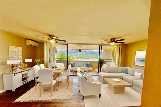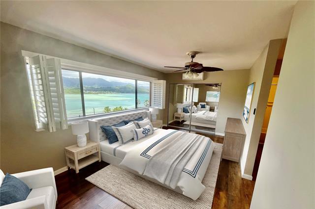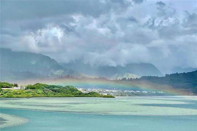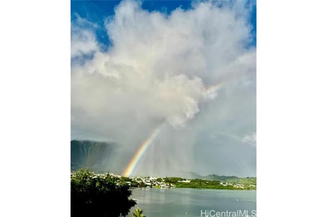 In ALL Kaneohe you will not find a more exquisite property that is in excellent condition, with breathing taking ocean views, with numerous upgrades including split AC throughout, on a single level, 3 bedrooms, 2 full baths, covered lanai, 2 assigned parking that is pet friendly for this incredible price. Each picture is worth a thousand words, Nothing is retouched by photoshop. The therapeutic effect of the ocean and rainbow views you will fall in love with and it will enhance your well being. The HOA fee is lower than most and covers more than most. The amenities seem to be endless in a well maintained complex. Three swimming pools, saunas, tennis courts, pickle ball courts, walking & jogging paths BBQ, car wash, club house, recreation area, 24 hour security, resident mgr. Quiet area and yet close to shopping and all small town amenities. Also included with the common expenses is your sewer, water, cable TV. Very convenient to Kbay, other military bases throughout the island Including via Like Like, Pali or H3 Big Box shopping. All photos with furnishings are Virtually Staged