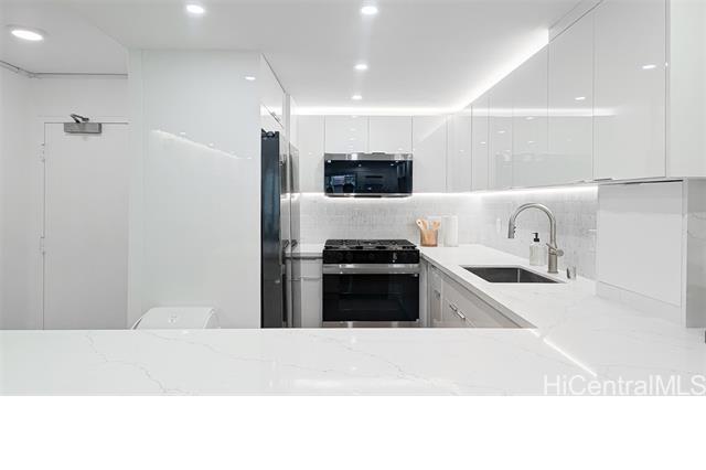 Beautifully renovated and turn-key 2-bedroom, 2-bath unit in the desirable Kuhio at Waikiki. Features an all-new kitchen with new appliances, remodeled bathrooms, new flooring, fresh paint, updated ceilings, beautiful lighting, and modern finishes throughout. Enjoy two private balconies and one covered parking stall. Building amenities include a resident manager, community laundry, secured entrance, and security cameras. Maintenance fee covers electricity, gas, hot water, cable, and internet. Special assessment of $416 per month ends December 2025. Prime Waikiki location close to the beach, dining, and world-class shopping. Perfect for investors—own a highly profitable legal vacation rental in the heart of Waikiki!