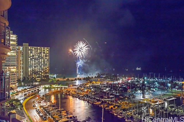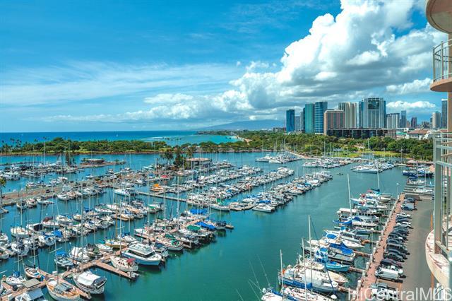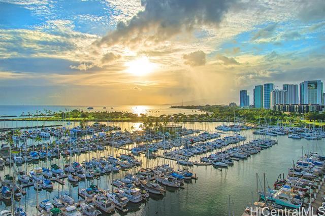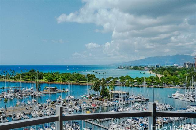 This successful, highly rated vacation rental offers an ideal opportunity for investors or for your own private island retreat! This beautifully remodeled oceanfront condo at the Ilikai Marina offers one of the most stunning panoramic Ocean and Yacht Harbor views in Waikiki. From your lanai, watch sailboats in the harbor and spectacular sunsets. Perched high on the 13th floor, this spacious 1-bedroom, 1-bath residence features nearly 180 degrees of ocean and yacht harbor views, thoughtful island-style décor with antiques and artwork. The Full kitchen is equipped with premium appliances and everything needed for guests or extended stays. The bedroom features a Westin Heavenly King Size Bed, custom furnishings, and a lagoon-facing window seat. The spacious bathroom is a custom remodel with luxury materials. Furnished and stocked with extensive beach gear — from kayaks, paddle-boards, and snorkel sets to coolers and lounge chairs — this property is truly turnkey. Located in an unbeatable location close to Waikiki Beach, the Duke Kahanamoku Lagoon, Ala Moana Beach Park, Magic Island and world-class shopping and dining, rental parking available, central A/C, 24-hour security. View Tour!