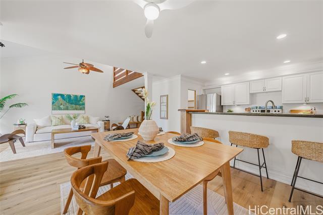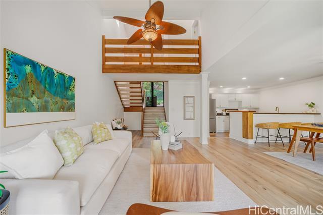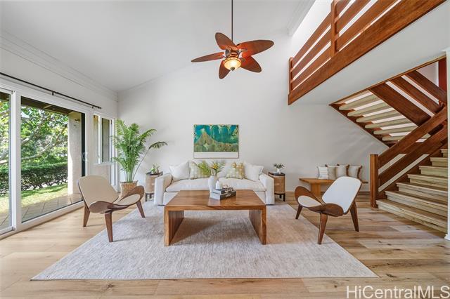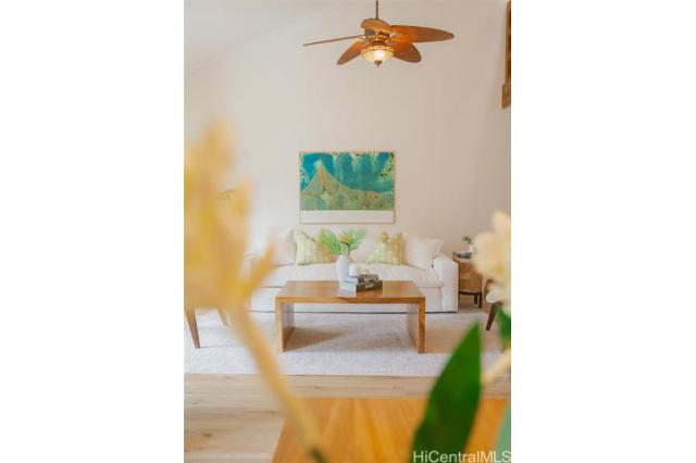 LOCATION, LOCATION, LOCATION! BLUESTONE spans over 50 acres of exclusive gated hillside overlooking Mid-Pacific Country Club, backed by acres of tranquil preservation land. Unbeatable building location and just minutes from world-famous Lanikai Beach and all the best of Kailua’s coastal lifestyle. Spend your days swimming, sailing, snorkeling, surfing, or paddling, then wind down with a sunset stroll through lush grounds, a sandy beach walk, or gourmet dining in Kailua town. This beautifully updated 3-bed, 3-bath townhouse offers resort-style amenities including tennis courts, a heated saltwater pool, spa, and saunas. Thoughtfully remodeled with a new primary ensuite shower, warm luxury vinyl plank flooring, and upgraded sliding doors and windows throughout. Enjoy serene views of Mid-Pacific Golf Course and the majestic Ko‘olau Mountains, complete with rainbows and glowing sunsets from your covered lanai. Ideal for year-round living or a lock-and-leave retreat. Bluestone is where you truly live your best Lanikai lifestyle.