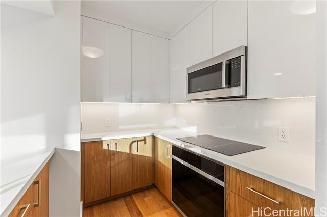 Experience BRAND NEW, NEVER-LIVED-IN 270° Views at Azure Ala Moana! This unique 12-stack corner residence features 1,092 sqft of living area with a spacious lanai and premium upgrades throughout. Enjoy engineered wood flooring, floor-to-ceiling windows, and split A/C with ducts concealed in the ceiling. The modern kitchen offers glossy white cabinetry, uniquely designed quartz countertops, and top-of-the-line Wolf, Sub-Zero, and Bosch appliances. Azure Ala Moana offers resort-like amenities including a swimming pool, fitness center, 4 BBQ cabanas, theatre, club lounge, 4 guest suits, hot tub and puppy park. Conveniently located near Ala Moana Shopping Center, world-class dining, and beautiful beaches — enjoy the best of city living with resort-style comfort.*All information provided is deemed reliable, but is not guaranteed and should be independently verified.