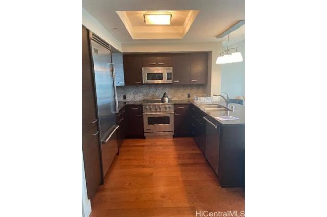 Built in 2009 the Allure sits with majestic beauty at the entrance of Waikiki. It features the well-designed beauty of a building, with a excellent foyer that presents a peaceful wonderful feeling, pool area is very special and easy to enjoy. This corner end apartment has an entry that walks you into the home and expands its way past the bedrooms and into the kitchen and living room. Because it's a corner apartment you feel like there are no neighbors around that location for 270 degrees. The apartment has two parking with plenty of guest parking. It justly matches its reputation as a well-maintained elegance at the entrance to Waikiki.