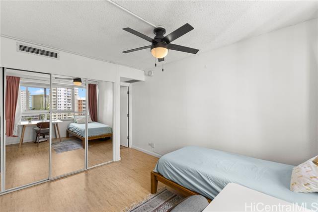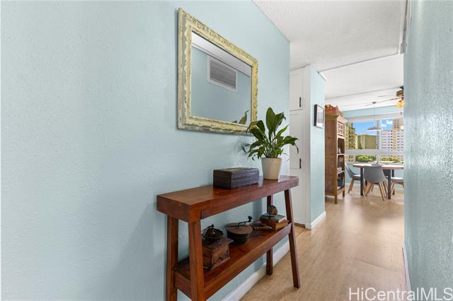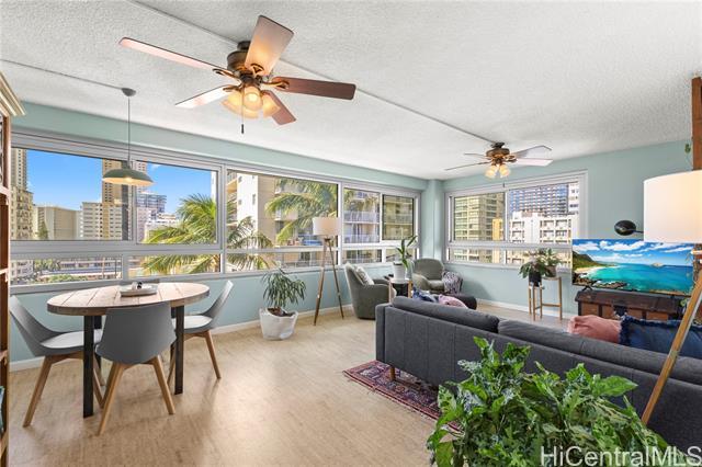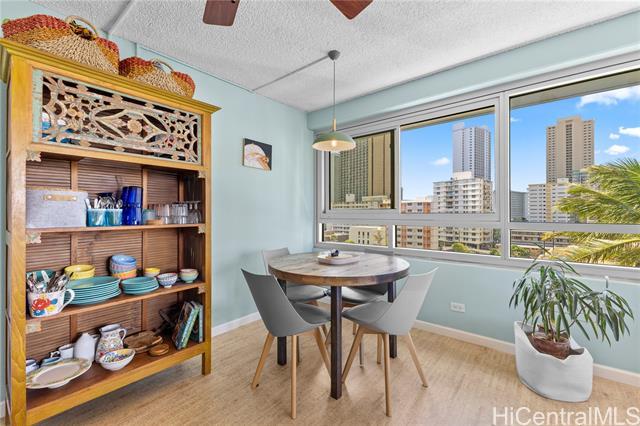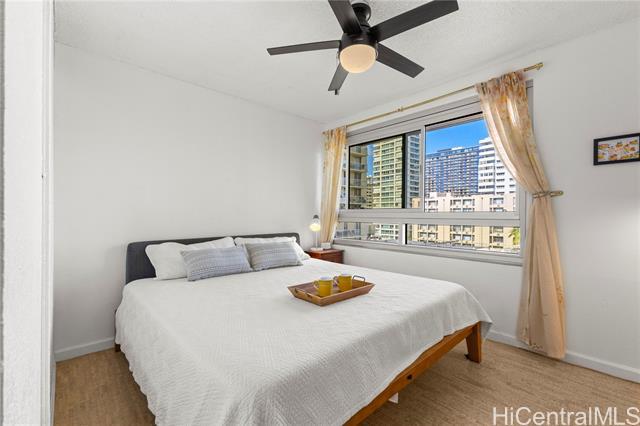 Fairway Manor is a boutique condominium with only 4 units per floor, offering a sense of privacy and community rarely found in the area.Its mid-rise scale and quiet environment appeal to those who appreciate a more residential feel while staying close to all the excitement Waikiki has to offer. The unit 603 has great floor plan. each bedroom separate out , the condo just replaced all windows brings many light and great air ventilation . All windows are Hurricane-rated double-pane windows for safety and energy efficiency. Just renovated brand-new kitchen has been tastefully designed with sleek cabinetry, quartz countertops, and contemporary fixtures that blend functionality with modern aesthetics. Central AC included maintenance fee , chill system is going to replace next year. Feels like home !Deeded approx 8x4 storage space is included .