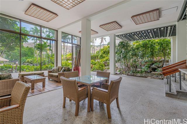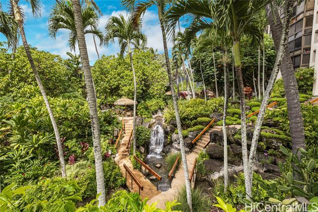 This Mauna Luan West Tower ground-floor end unit offers exceptional privacy and lush garden views in one of the largest floor plans available, featuring over 1,350 square feet with 2 bedrooms and 2 baths. The open area that expands the living and dining areas, creating a bright, spacious layout perfect for entertaining or relaxing. The home includes a beautifully remodeled bathrooms, new flooring, new paint. Two assigned parking stalls, and plenty of guest parking. Enjoy the resort-style amenities that make Mauna Luan one of Hawai'i Kai’s most desirable communities. Residents have access to two lagoon-style swimming pools with waterfalls, multiple hot tubs, putting greens, walking paths, BBQ areas, and beautifully landscaped grounds with streams and waterfalls. Additional features include a recreation center with fitness facilities, racquetball and handball courts, game rooms, saunas, and a resident manager with 24-hour security. Conveniently located near shopping, dining, beaches, and the Hawai'i Kai marina, this home combines spacious, flexible living.