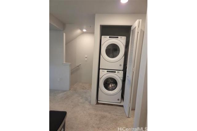 Welcome to Kohina at Ho'opili in the Ho'opili Master Planned Community. One of the larger floor plans with a spacious 1,283 sq ft living area, 2 bedrooms, 2 full baths and a half bath. The primary bedroom takes up the entire second floor, walk-in closets in both bedrooms, and a covered balcony. Includes split ACs, fire sprinklered complex, Mohawk carpeting-Swiss Alps. Vinyl PLank Pioneer Flooring-Gothem Grey, LG Hi-Mac kitchen and bath countertops, undermount single bowl kitchen sink. Whirlpool stainless steel range/oven, microwave, dishwasher, Whirlpool stainless steel refrigerator, and stacked washer/dryer. Restaurants, shopping at Ka Makana Ali'i Mall, theaters, schools/UH West Oahu, and the rail station. Soho Community Center with a community association pool, a dog park, tot lot, and near golf courses.