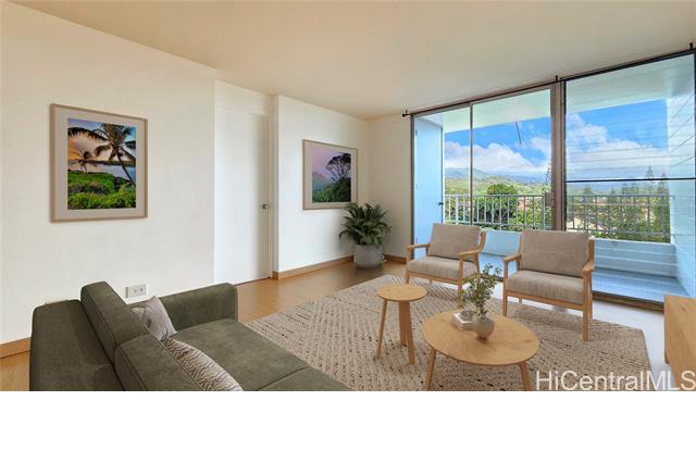 Looking for a spacious home with low maintenance fees or thinking about downsizing to easy condo living? This is it! Step inside and be greeted by stunning, expansive mountain views and the peaceful sounds of birds from your private lanai — with a glimpse of the ocean from this floor as well! Bright and airy, this beautifully updated 3-bedroom, 2-bath home offers comfort and convenience, including your very own in-unit washer and dryer. Located on the quiet side of the building, this unit sits at the perfect height — high enough to enjoy the views, yet low enough for convenient stair access if needed. Amenities include a keyed elevator, heated pool, recreation room, and fitness center. Pet-friendly (with some restrictions), this community truly has it all! And let’s not forget the prime location — just minutes from shopping, dining, entertainment, and major routes like H-3 and Likelike Highway for an easy commute to town. Plus, 100% hurricane insurance coverage offers added peace of mind. Don’t wait — call today to schedule your private showing!