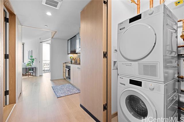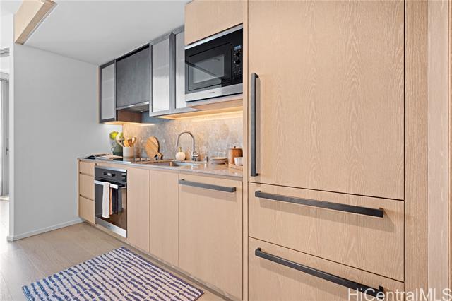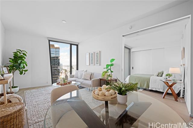 Experience elevated island living in Ko‘ula #3511, a luxurious residence in Honolulu’s vibrant planned community of Ward Village. Ko‘ula features a striking architectural design that maximizes natural light and views. This high-floor unit offers floor-to-ceiling windows and a large private lanai. The interior is finished with premium Miele appliances, custom cabinetry, and elegant natural materials that reflect refined island style. Residents enjoy world-class amenities such as a resort-style pool, spas, BBQ cabanas, indoor and outdoor fitness centers, private dinning areas, a grand lanai, sunset lounge, and even a place for your furry friend to run and play. Perfectly located beside Victoria Ward Park and moments from Ala Moana Shopping Center, beautiful beaches, Whole Foods, dining options galore, and boutique shopping, Ko‘ula offers a seamless blend of modern design, comfort, and convenience—an exceptional opportunity to enjoy the best of Honolulu.