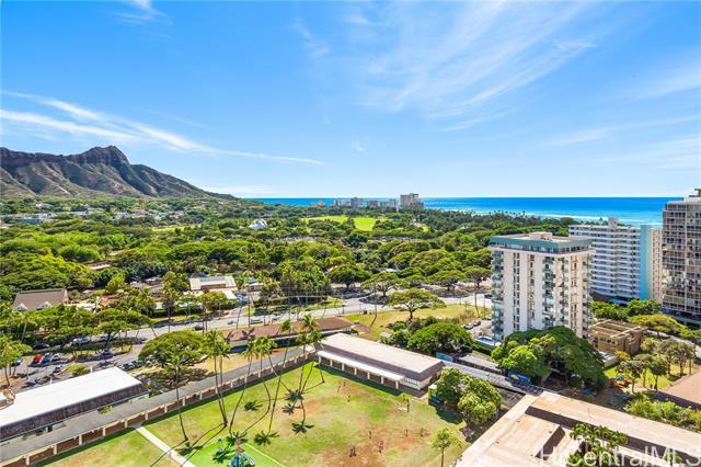 Step away from the energy of Waikiki and into a world of calm, comfort, and exclusivity. Nestled in a serene enclave just beyond the bustle, this boutique residence offers a rare blend of privacy and panoramic beauty. With only five residences per floor—two spacious two-bedroom units and three thoughtfully designed one-bedroom homes—each layout is uniquely staggered to ensure maximum privacy and minimal shared walls. From your expansive lanai, take in sweeping, unobstructed views that no other building can offer. Whether you're sipping your morning coffee or winding down at sunset, this is your front-row seat to paradise. Washer/Dryer, Range, Refrigerator were replaced end of 2024.