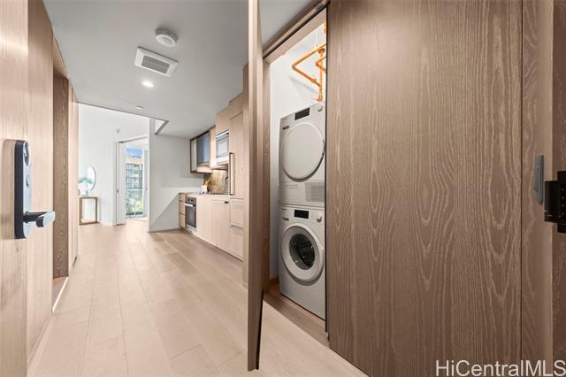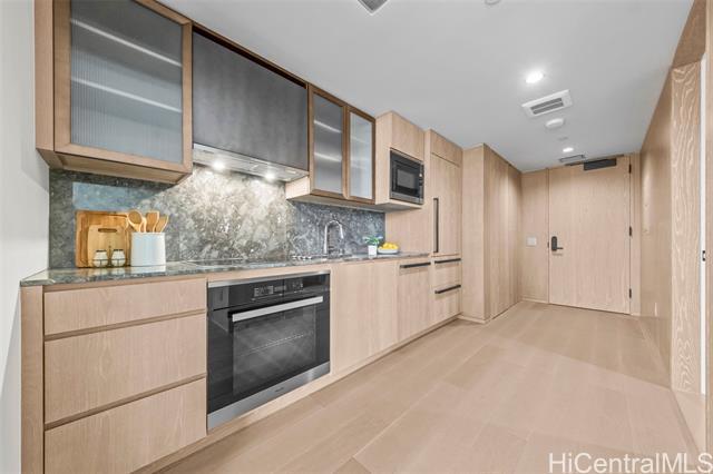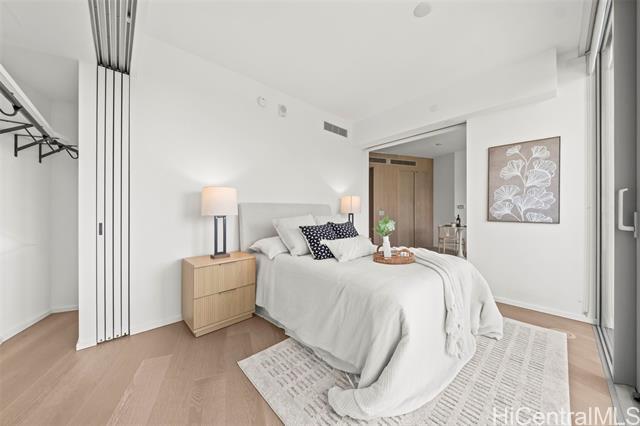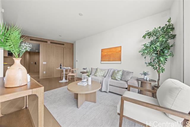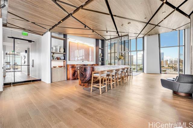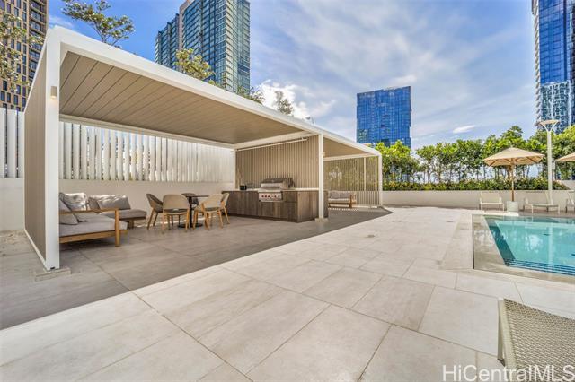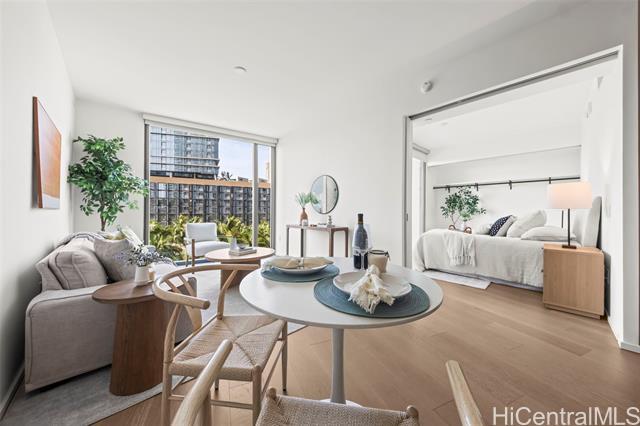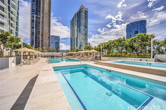 Ko‘ula #411 offers an elevated island lifestyle in the heart of Ward Village. This well-maintained 1-bedroom residence includes the convenience of a same-floor assigned parking stall. The unit looks directly onto the new 4-acre park currently under construction, which is nearing completion. Once finished, it will feel like having your own private garden — without any maintenance responsibilities. This stack also features higher ceiling heights compared to the upper floors, and the living room window is larger than many other 11-stack units, giving the home a more open and spacious feel. Residents enjoy access to world-class amenities, including a resort-style pool and spa, BBQ cabanas, indoor and outdoor fitness centers, private dining rooms, a grand lanai, sunset lounge, and dedicated outdoor spaces for pets. Ideally located right next to Victoria Ward Park and just an approximately 0,3 miles from beautiful Ala Moana beach park, Whole Foods, and an abundance of dining and boutique shopping options.