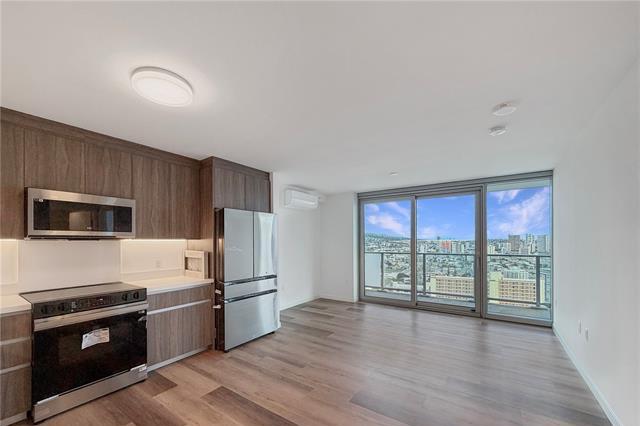 Discover modern island living in this brand-new large 1-bedroom, 1-bath home at The Park on Keeaumoku Rycroft Tower, Honolulu’s newest residential community completed in 2025. Situated in the heart of central Honolulu, this residence offers views of Diamond Head and the city skyline, blending luxury, comfort, and convenience. Just steps away from Ala Moana Shopping Center, Sam’s Club, Walmart, and countless dining options, you’ll be surrounded by the best shopping and entertainment Honolulu has to offer. Residents enjoy an array of resort-style amenities, including an infinity pool with private cabanas, whirlpool spa, BBQ pavilions, club rooms, fitness and yoga studios, sauna, co-work spaces, media lounge, and even a movie theater. The first and second floors feature a thoughtfully designed commercial space, providing a dynamic and convenient lifestyle right at your doorstep.Whether you’re looking for your own modern retreat or an investment in Honolulu’s future, this one-bedroom residence offers an exceptional opportunity in one of the city’s most exciting new communities.