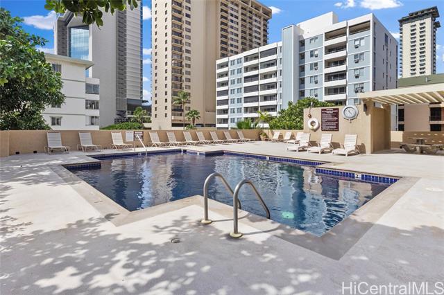 Discover this upper-level, 1-bedroom, 1-bath condo in the always popular Aloha Towers, offering comfort, convenience, and a desirable Waikiki lifestyle. The residence features a relaxing ocean view, brining natural light and a refreshing sense of openness to the home. Set in central Waikiki, you'll be just moments from iconic beaches, great restaurants, and endless shopping options. Aloha Towers provides a range of amenities designed for relaxation, including pool, whirlpool, sauna, BBQ areas, and expansive outdoor decks. The maintenance fee offers exceptional value by covering electricity, gas, hot water, cable, WiFi, and central AC. The home also includes one parking stall, plus convenient guest parking for visitors. This condo is sold AS-IS and is waiting for it's new owner to make it their home.