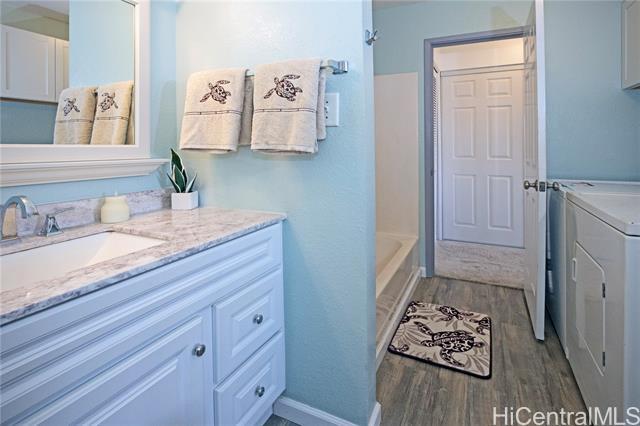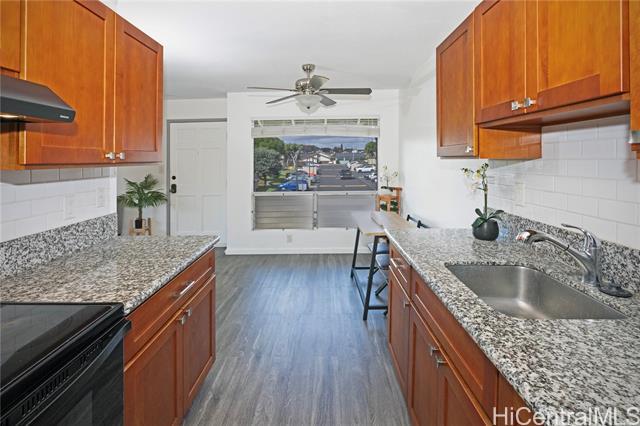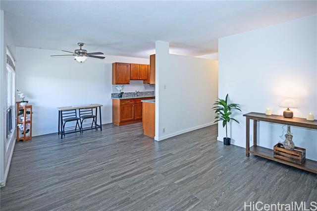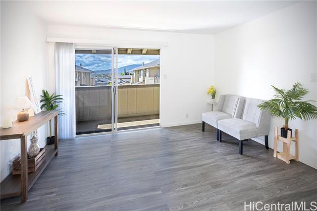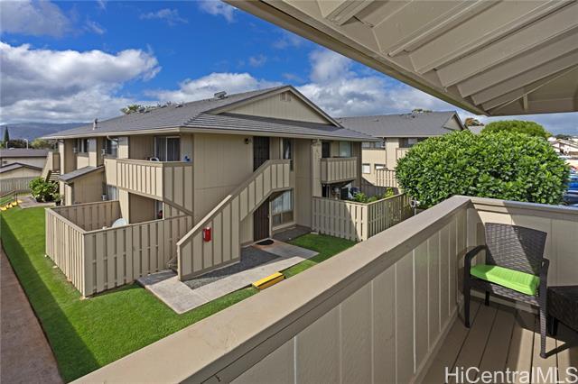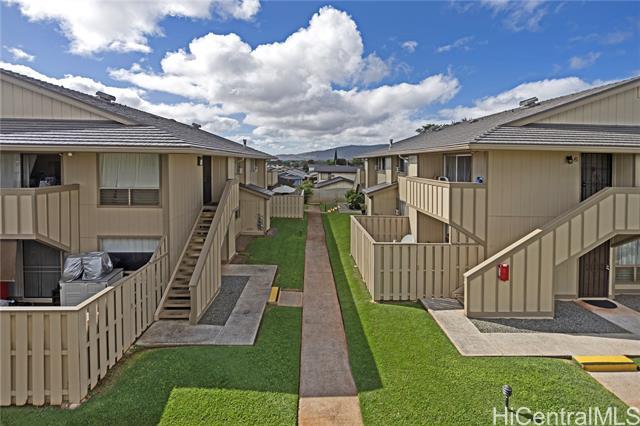 Affordable, VA Approved, Pet-Friendly Living in Highly Desirable Waipio Gentry. Discover the best of Central Oahu living in this smart ownership alternative to renting in this pet-friendly upstairs corner unit at Kauhale – Rainbow Series offering exceptional natural light, refreshing cross-winds, and added privacy with no neighbors above. A move-in ready 2 bedroom, 1 bath, 750 sf of interior space unit with a cozy lanai. Enjoy an updated kitchen with wood cabinets, granite-style counters, laminate flooring, and an open living room layout. Conveniently located near Costco, Waipio Shopping Center, Foodland, Central Oahu Regional Park, Waikele Shopping Centers, and easy access to H-1/H-2 facilitating quick commuting access to Schofield and Pearl Harbor, making this location one of Central Oahu’s most desirable. One assigned parking stall (#46) plus ample guest (13) stalls & street parking. Low HOA fee includes water & sewer. Don’t miss this opportunity to own in a well-maintained, lower-fee complex known for strong demand, convenient access to neighborhood schools, and community pride. Well-suited for owner-occupants seeking comfort, value, and location in one package. Move-in ready.
