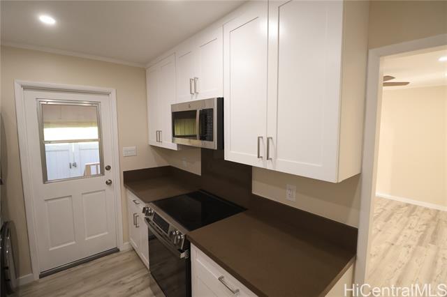 Welcome home to this stunning, fully renovated Ridgeway townhouse. This 3-bed, 2-bath home has been upgraded to turnkey modern island living. Step inside and fall in love with the brand-new vinyl flooring, fresh paint, and a completely transformed kitchen and bathrooms. The kitchen shines with new cabinetry, sleek countertops, and all-new appliances, perfect for cooking, entertaining, and everyday living. Custom mahogany/cedar wood closets elevate each bedroom with premium style and storage. Smooth ceilings (professionally popcorn removed!) and recessed lighting create a clean, bright, modern atmosphere throughout and a new modern ceiling fans enhance natural airflow. Two side-by-side parking stalls conveniently located near the entrance. Plus, enjoy Ridgeway’s amenities: a community pool, playground and pet-friendly home! Just minutes from Pearlridge Center, dining, Pali Momi Hospital, and direct H-1 access.